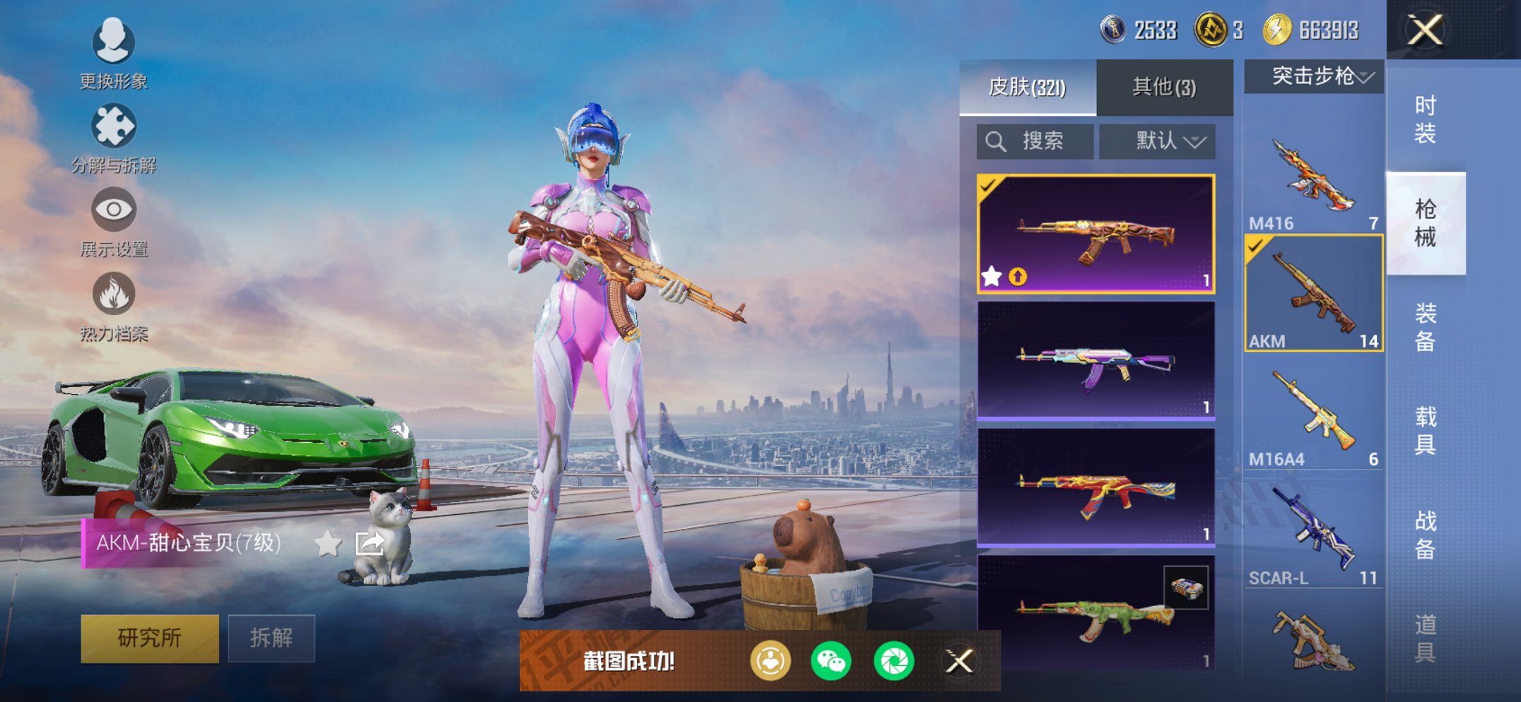 木乃伊绚金战神M4风花雪月6粉装2特效枪1载具身法素材号、V社交、游戏正常