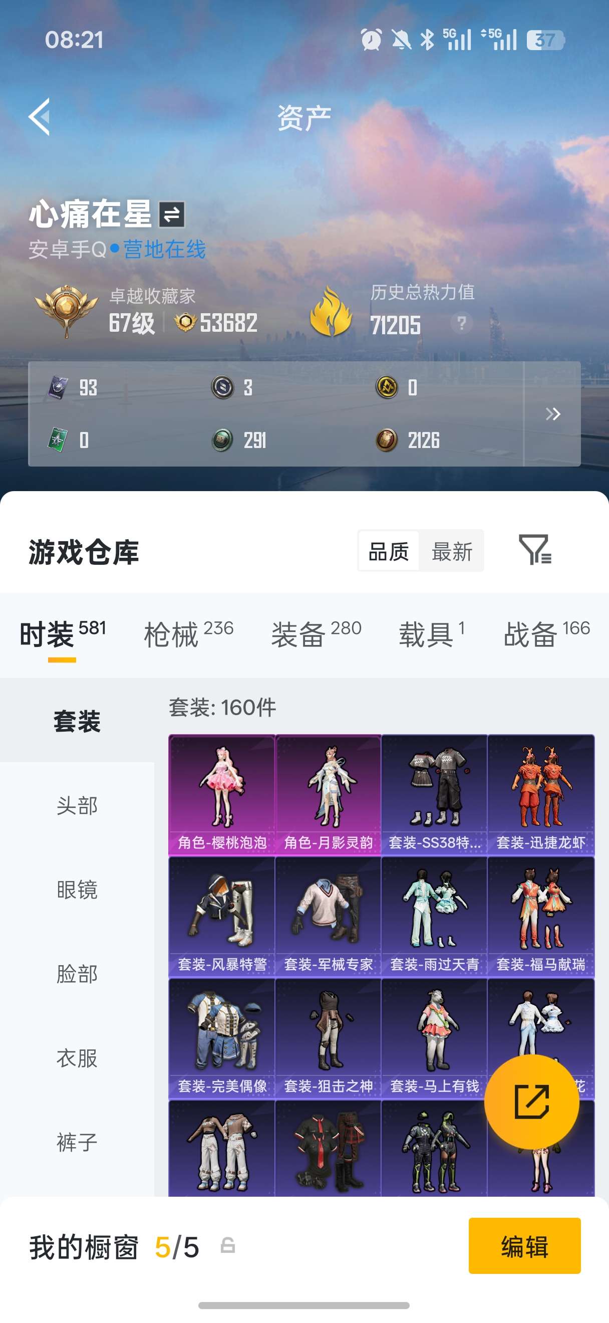 安卓 手Q-1粉装-8特效枪-0载具-1粉色飞行器-37497热力值-3王牌印