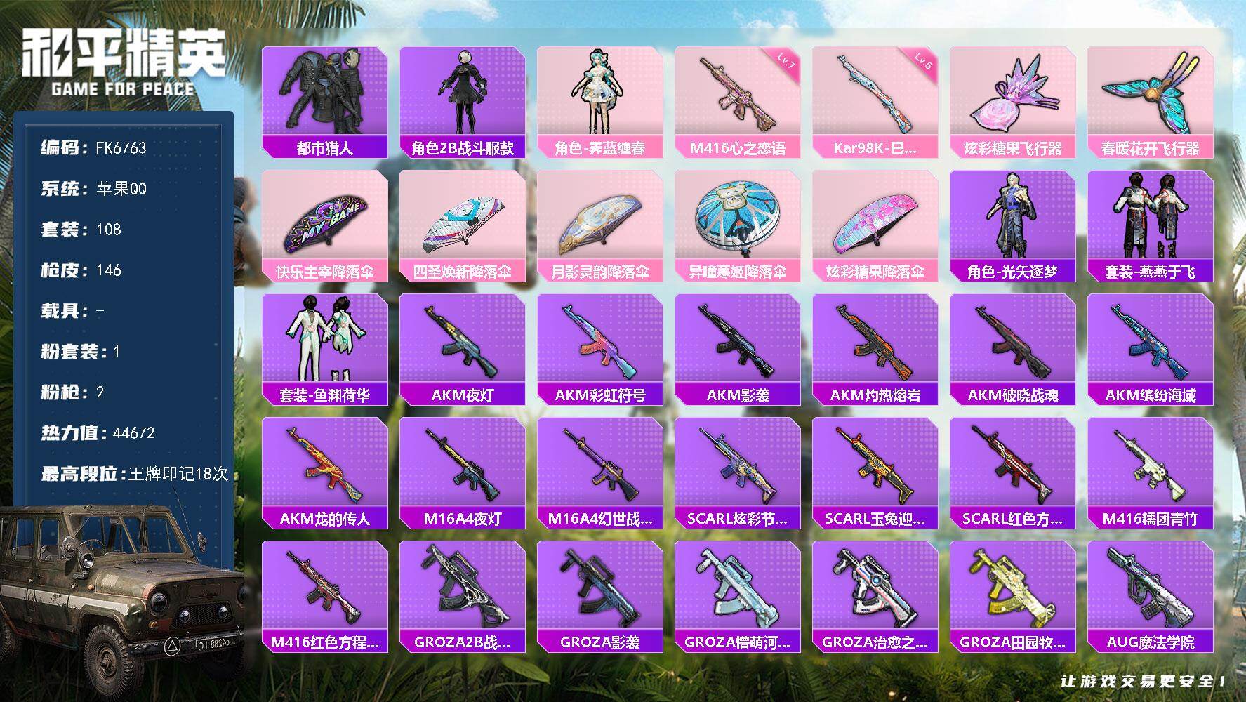 【FK6763】108套装/枪械2/装备134/战备114/王牌印记18/热力