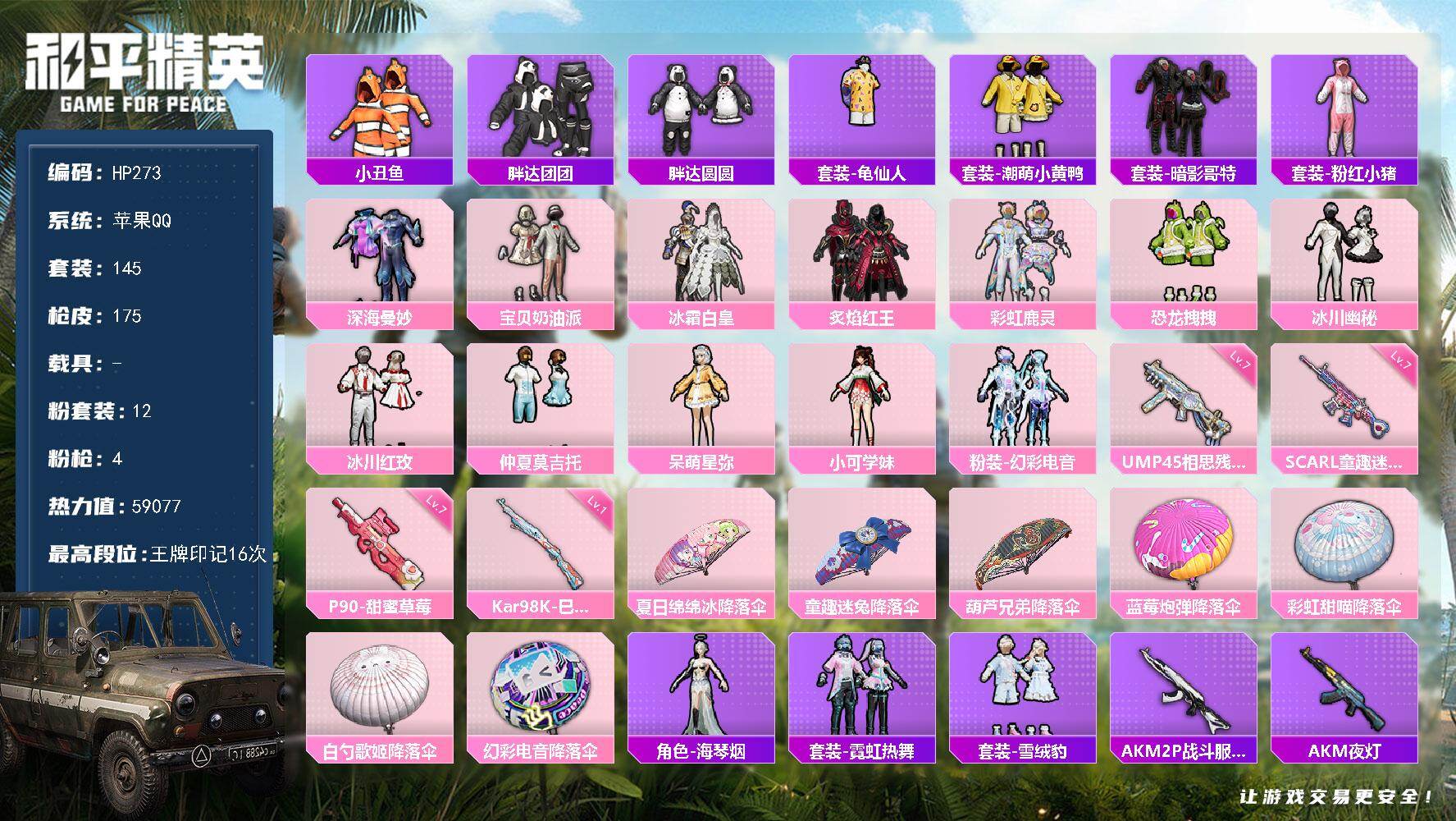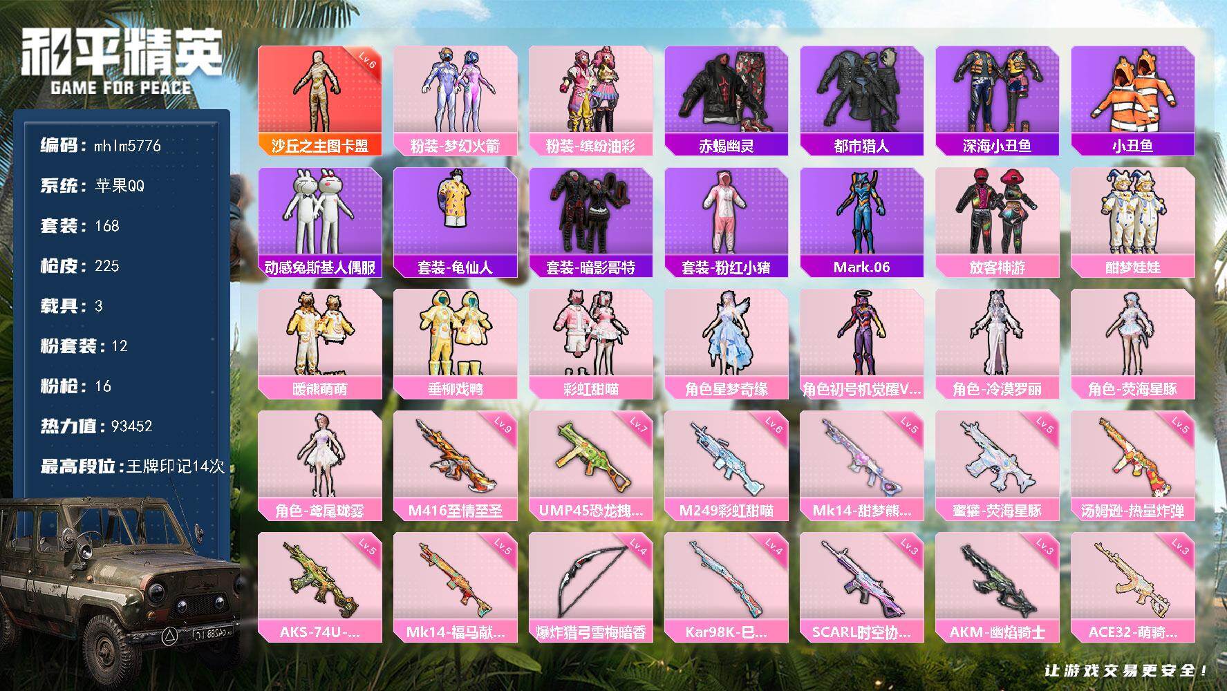 【mhlm5776】苹果 手Q-1神装-12粉装-16特效枪-3载具-6粉色飞