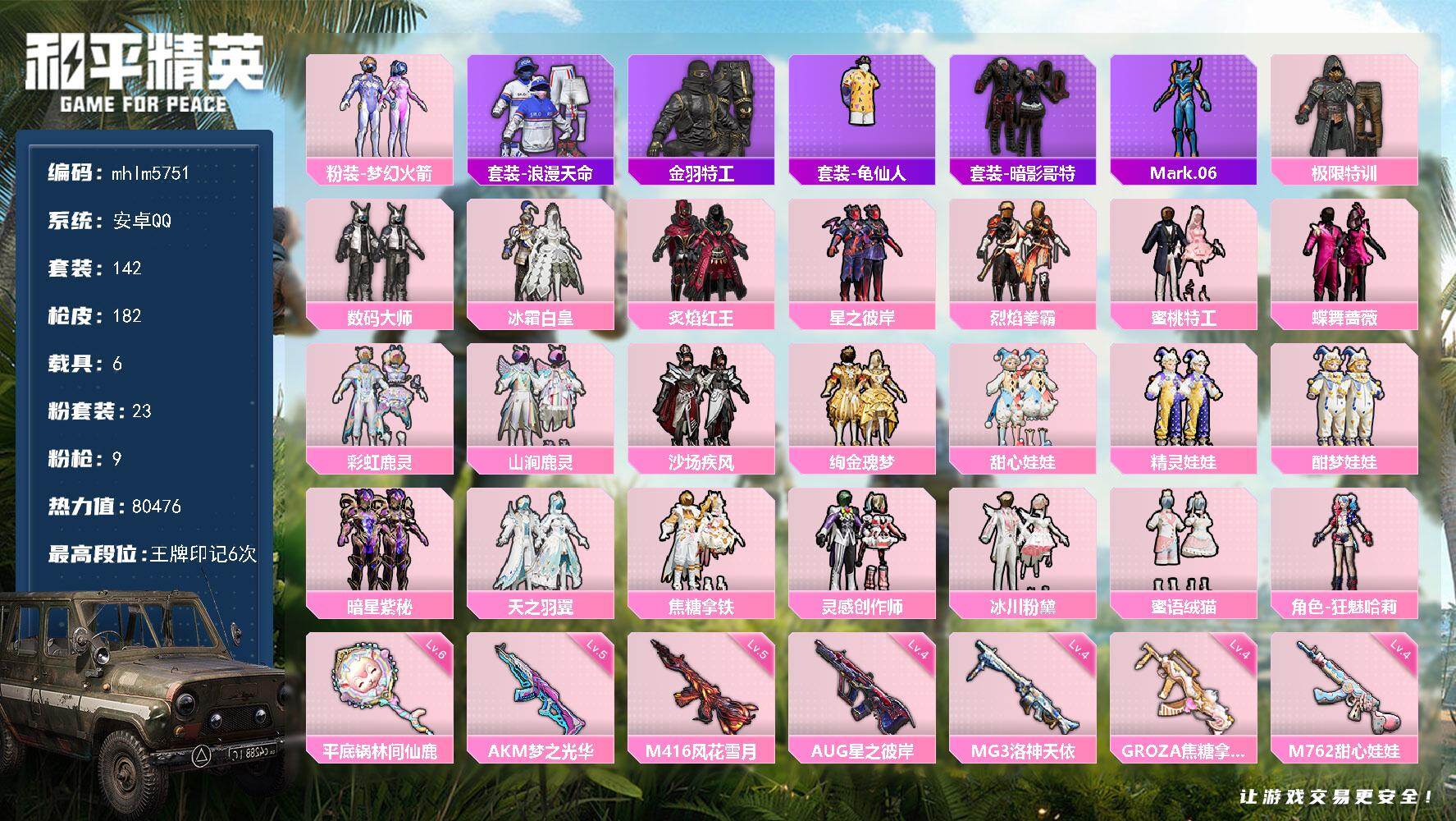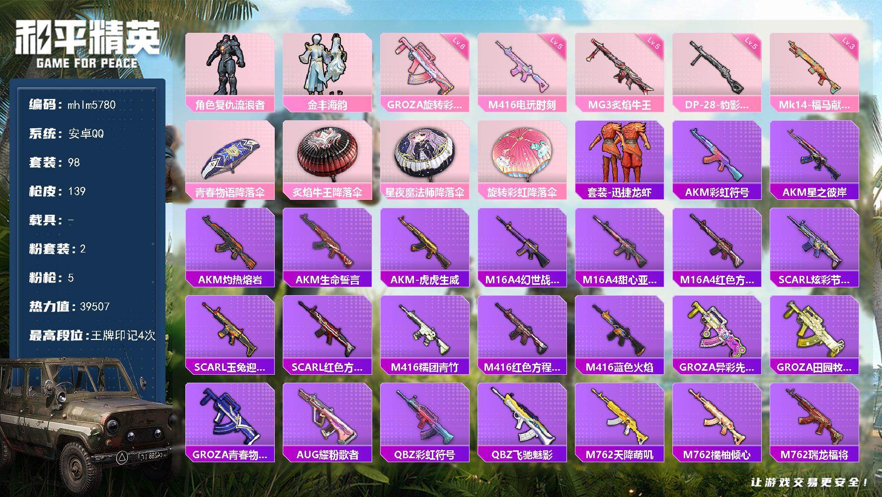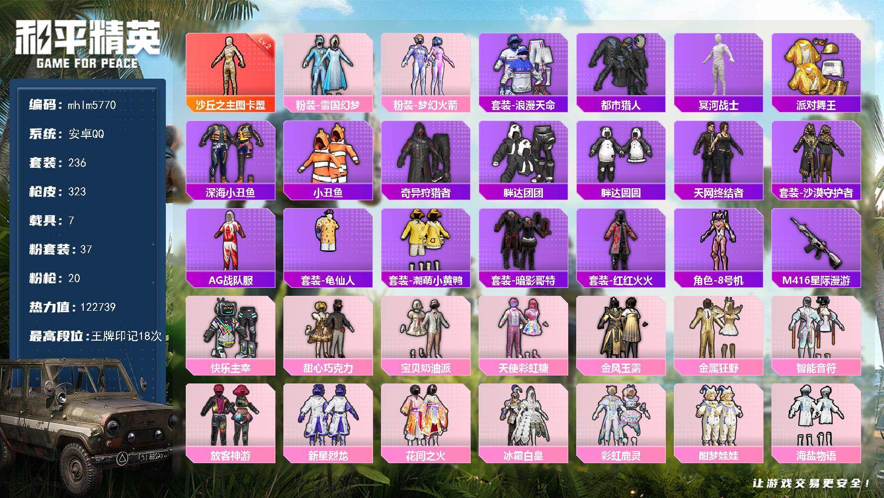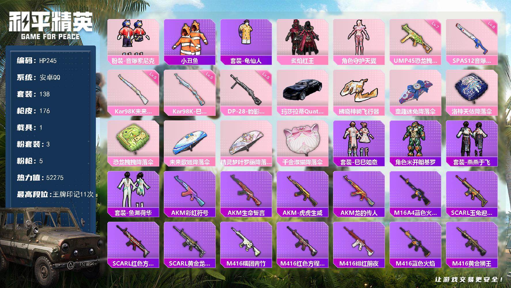 【秒换绑】安卓 手Q-3粉装-3特效枪-0载具-0粉色飞行器-24724热力值