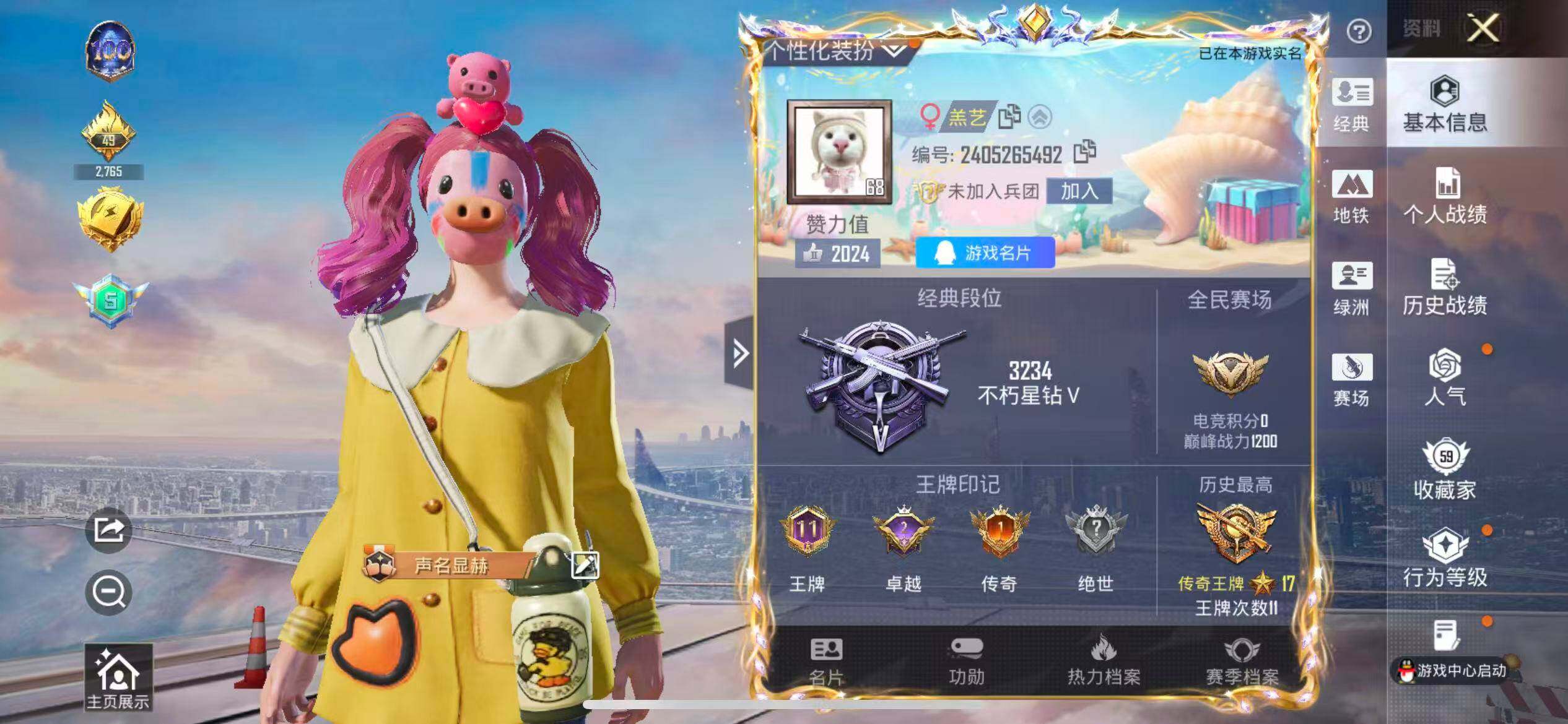 2粉装-3特效枪-1载具-2粉色飞行器-34107热力值-2王牌印记-82套装-111枪皮