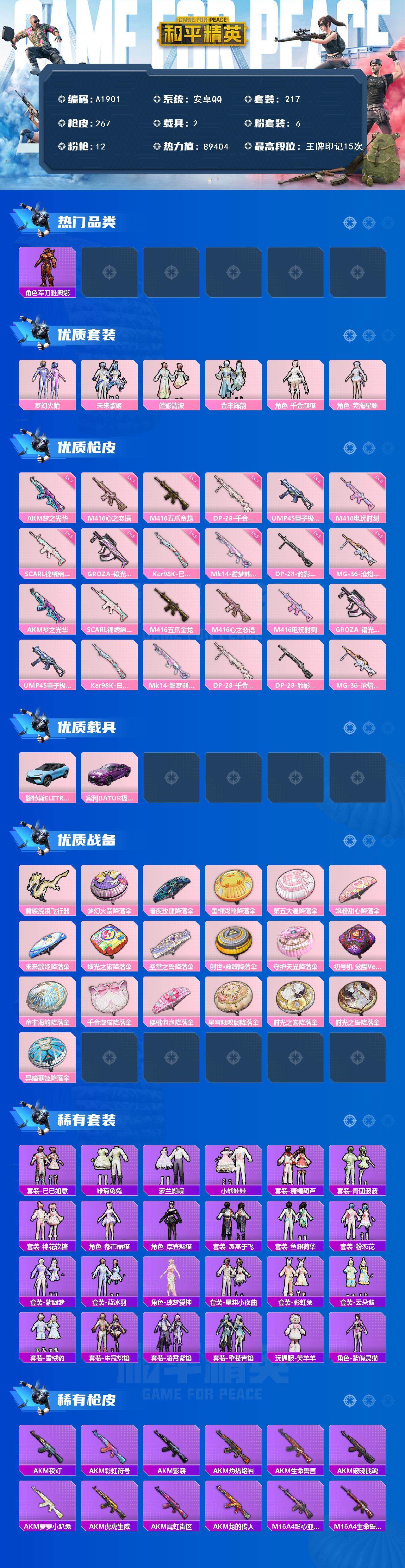 6粉装-12特效枪-2载具-3粉色飞行器-89404热力值-15王牌印记-217套装-267枪皮