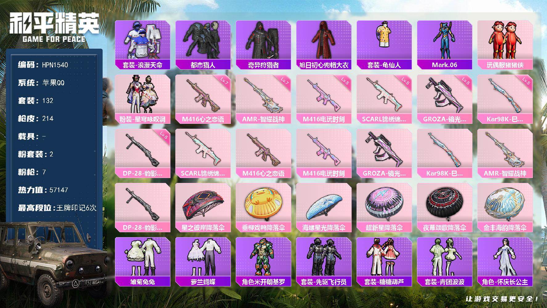132套装/枪械7/装备215/战备122/王牌印记6/热力值57147/