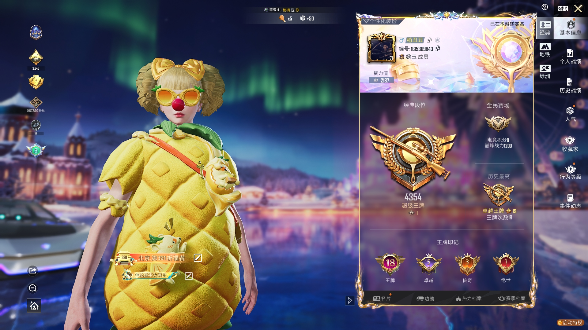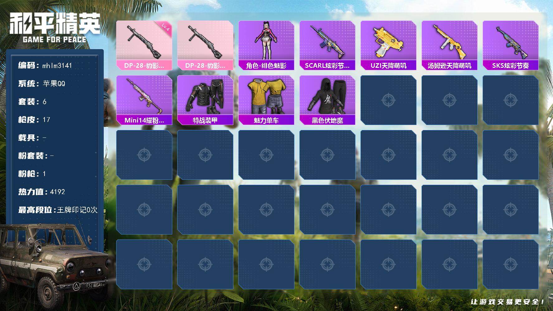a4214/苹果v/热力值:102415,2神装,16粉装,19粉枪,6载具,38粉色战备,167