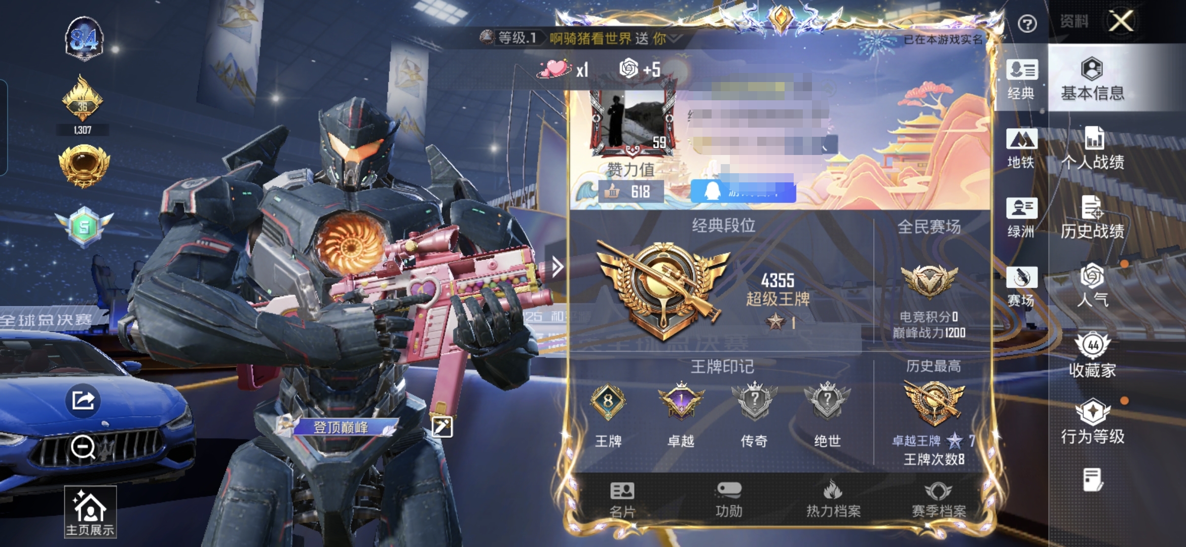 a4215/安卓QQ/热力值:84123,1神装,12粉装,18粉枪,8载具,29粉色战备,152套