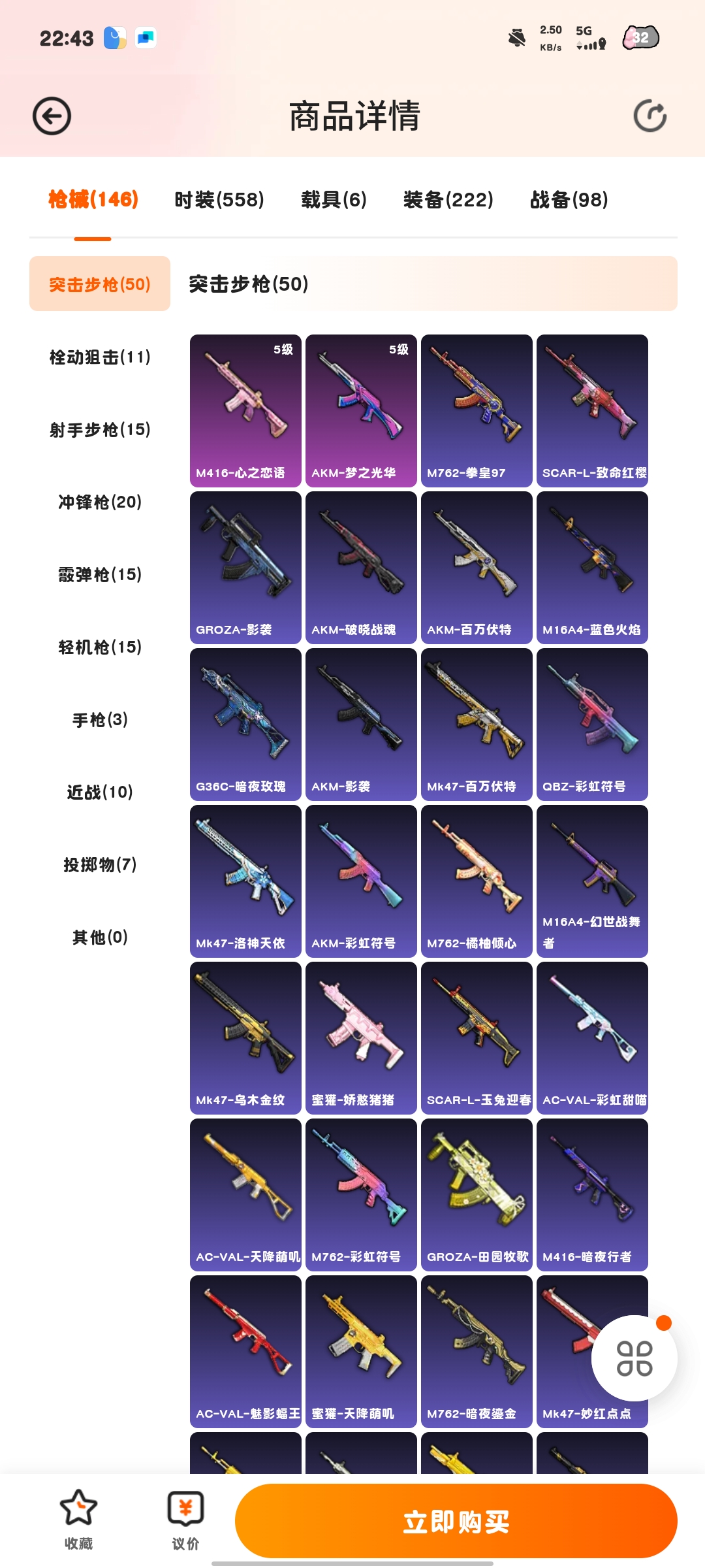 hs56647 安卓手Q-22王牌印记-13粉装-14特效枪-2载具-94322热力值-191套装-