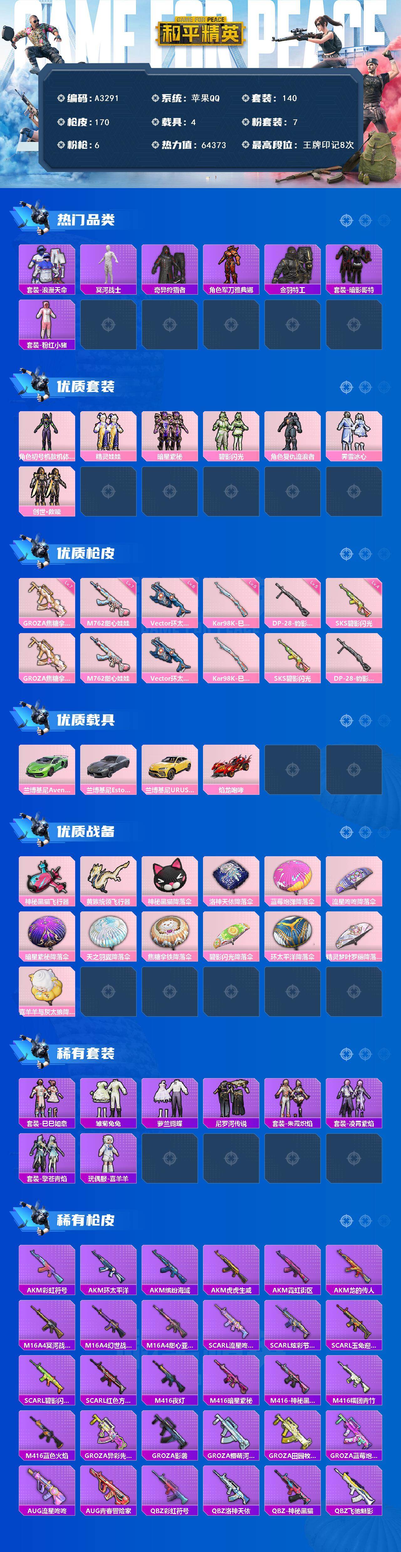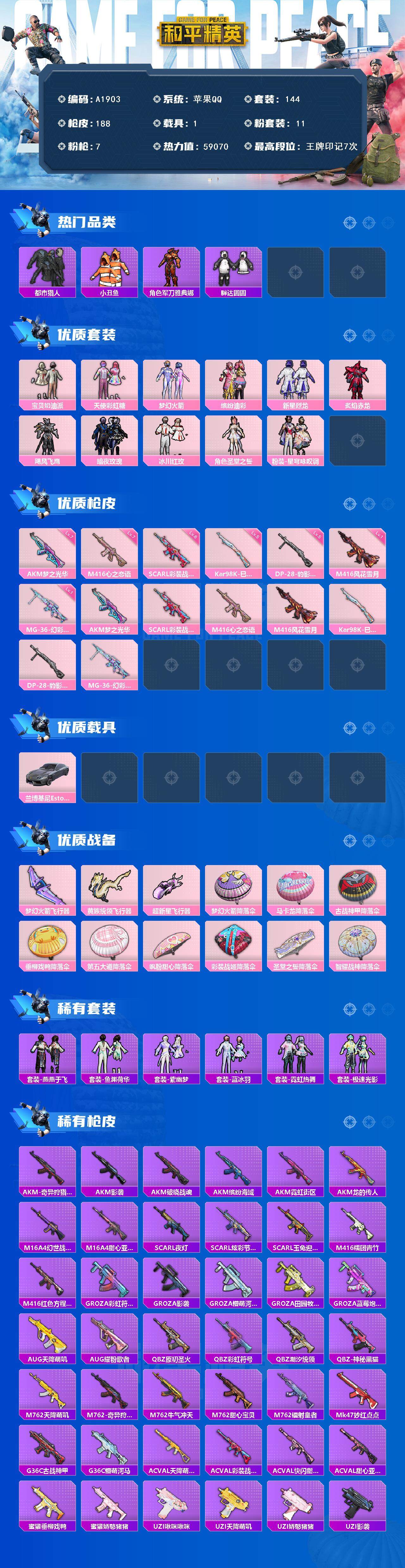hs56349 苹果手Q-4王牌印记-2粉装-2特效枪-1载具-32138热力值-84套装-110枪
