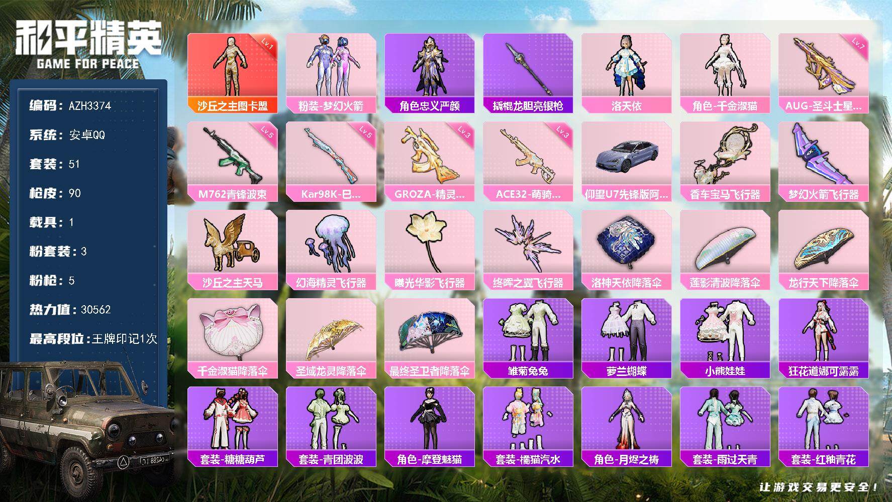 【AZH3376】安卓 手Q-2粉装-5特效枪-0载具-0粉色飞行器-4767