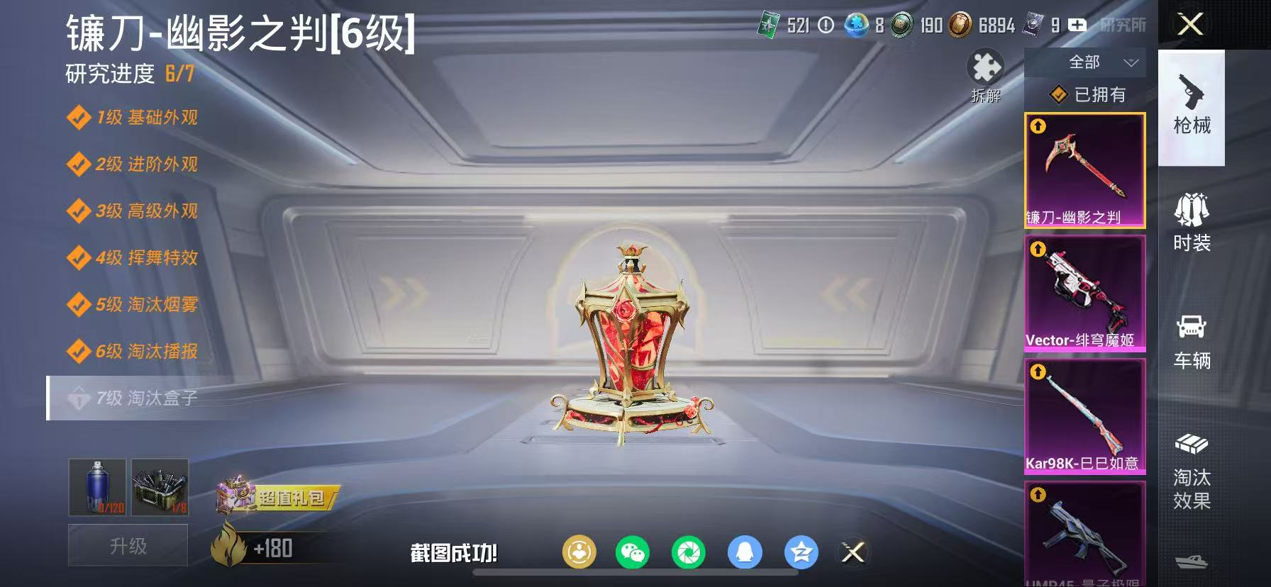 1神装-4粉装-4特效枪-1载具-6粉色飞行器-46564热力值-6王牌印记-97套装-143枪皮