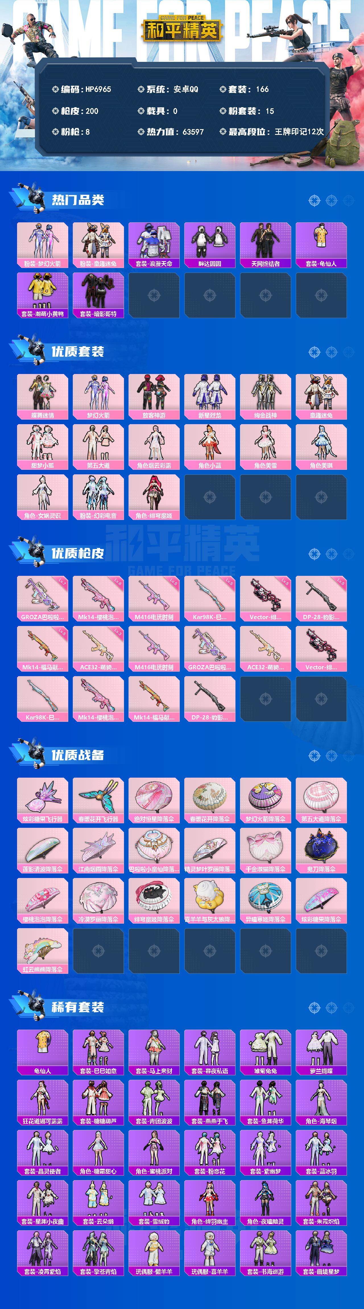 3粉色飞行器-63597热力值-12王牌印记-166套装-200枪皮