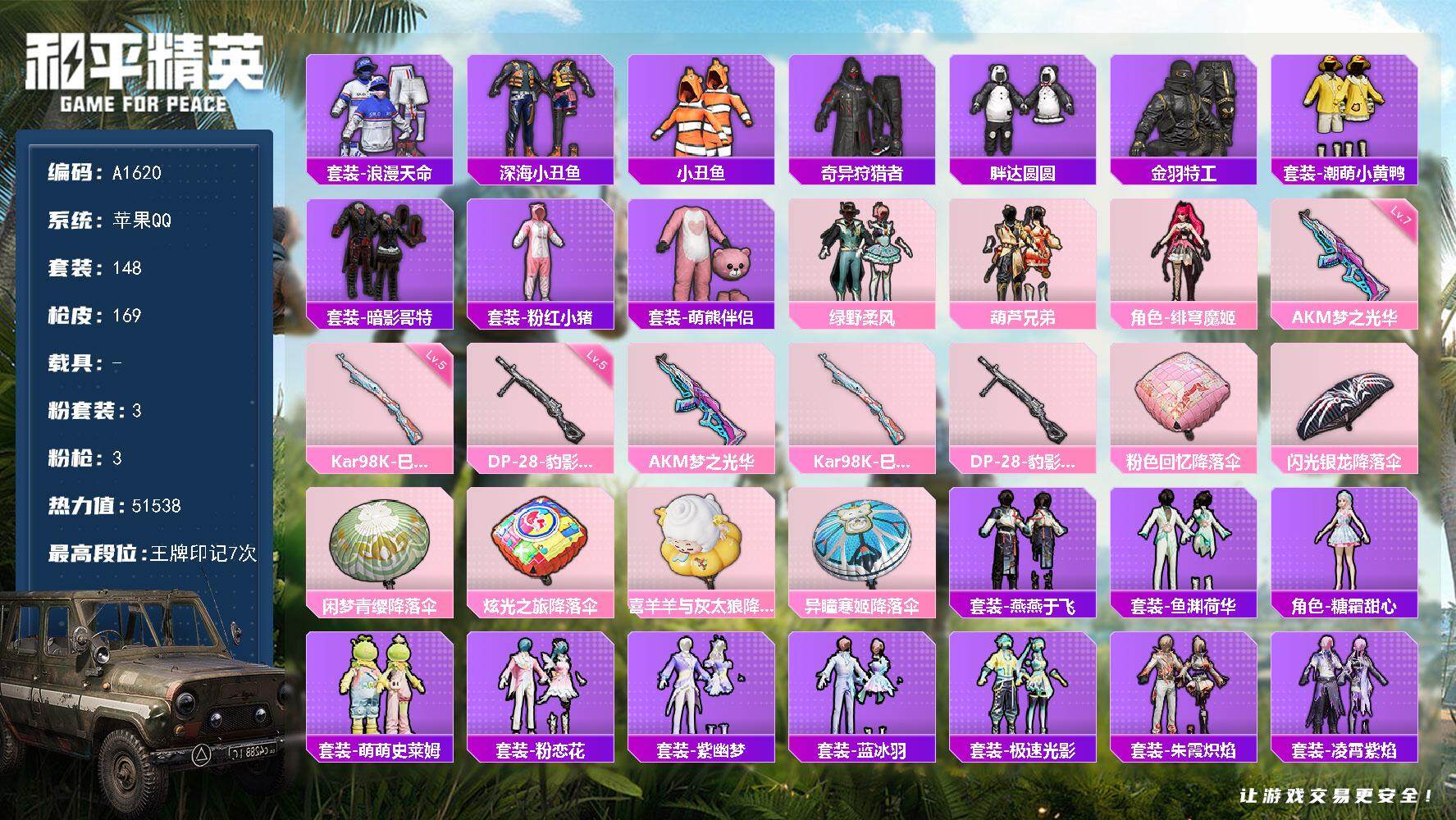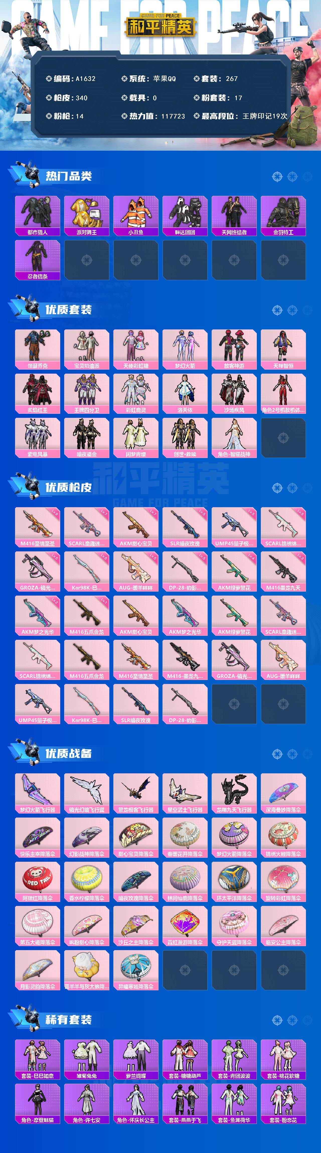 苹果Q-1红装2载具5粉装5特效枪11热门178套装254枪皮 82502热力值 13印记