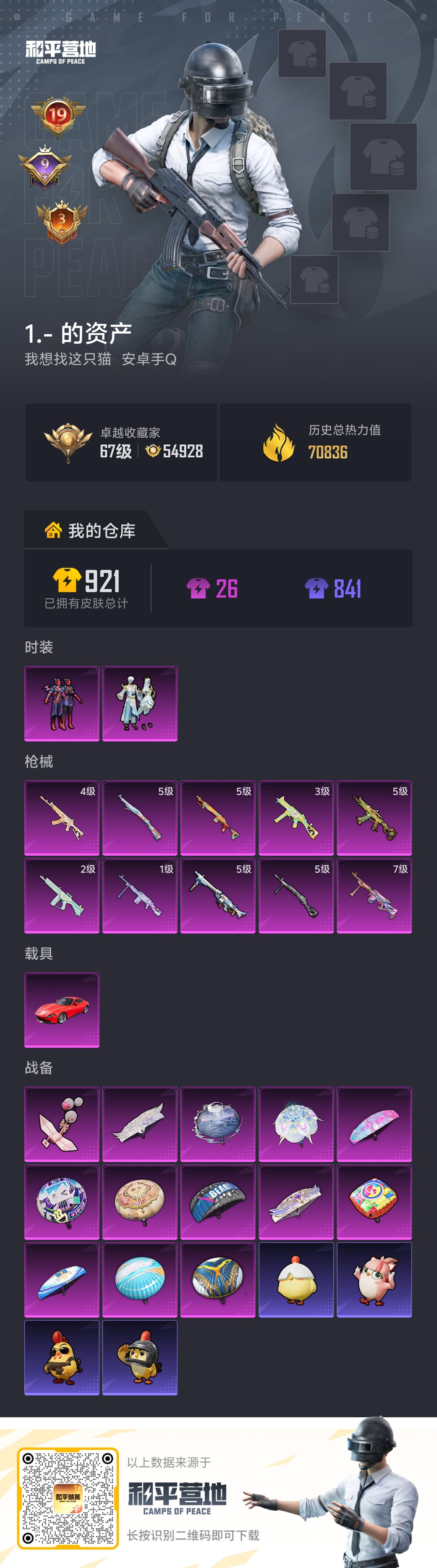 11粉装-8特效枪-6载具-3粉色飞行器-51926热力值-8王牌印记-95套装-140枪皮