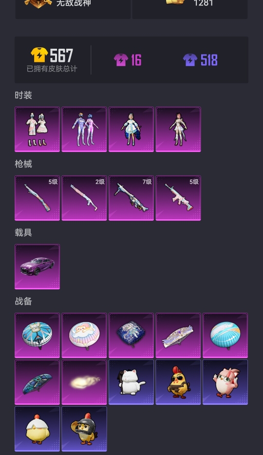 1红装6稀有1载具20粉装9特效枪31热门289套装339枪皮 127312热力值 21印记 历史无敌战神