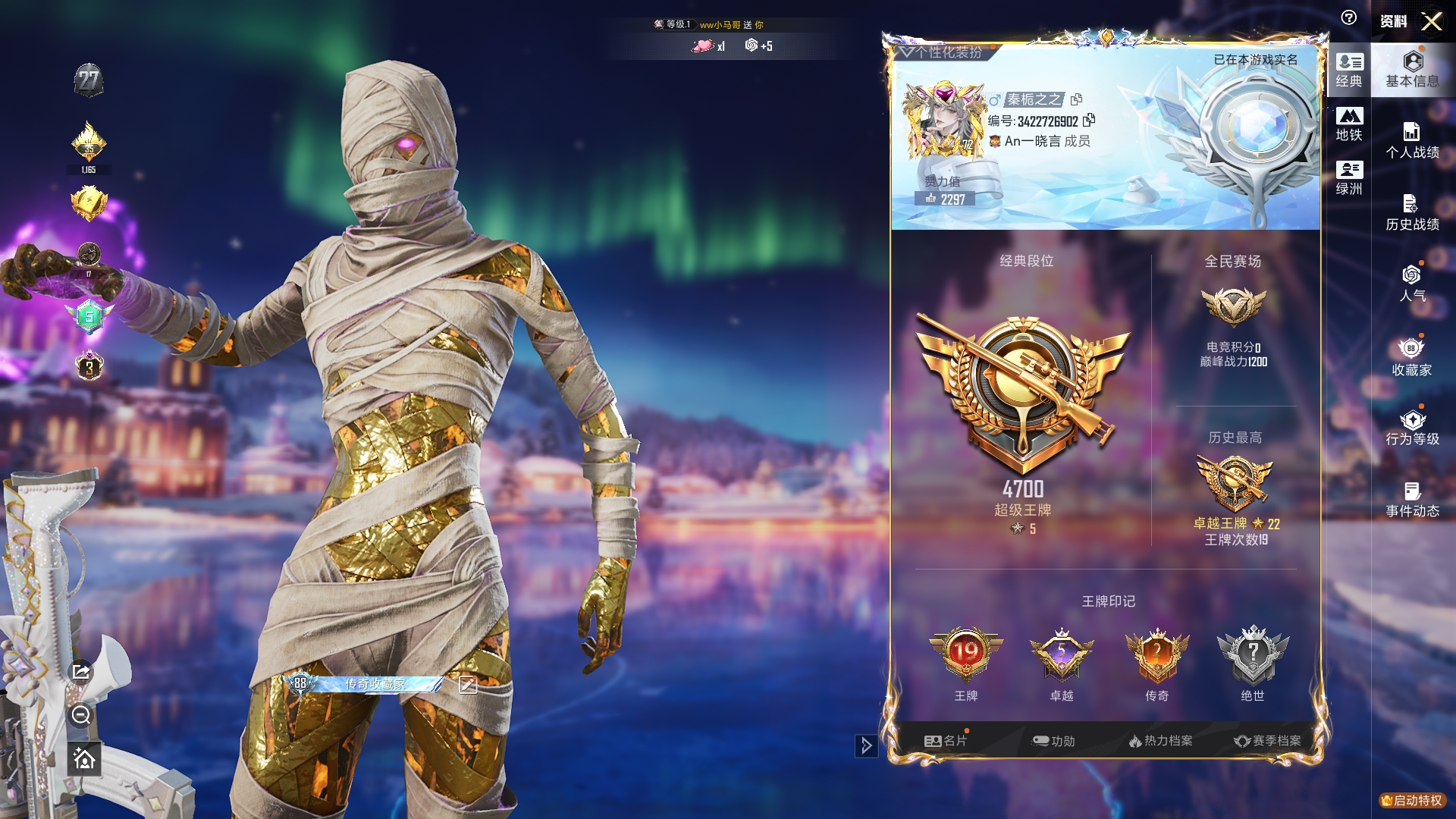 168套装/枪械5/装备269/载具8/战备149/王牌印记19/热力值92088/