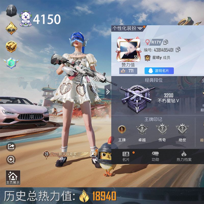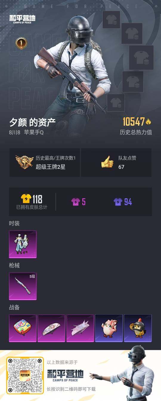 安卓 手Q-5粉装-10特效枪-0载具-1粉色飞行器-39145热力值-5王牌