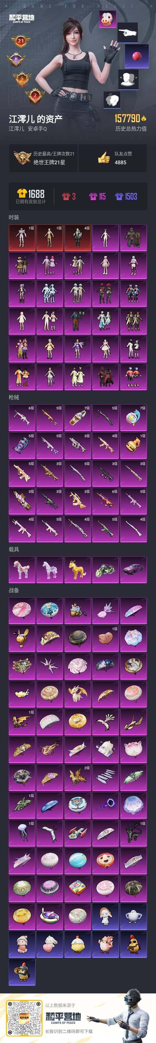 苹果 手Q-4粉装-8特效枪-0载具-1粉色飞行器-31523热力值-6王牌印