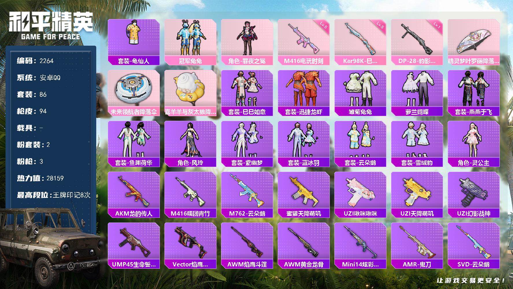 安卓 手Q-3神装-15粉装-23特效枪-5载具-13粉色飞行器-115957