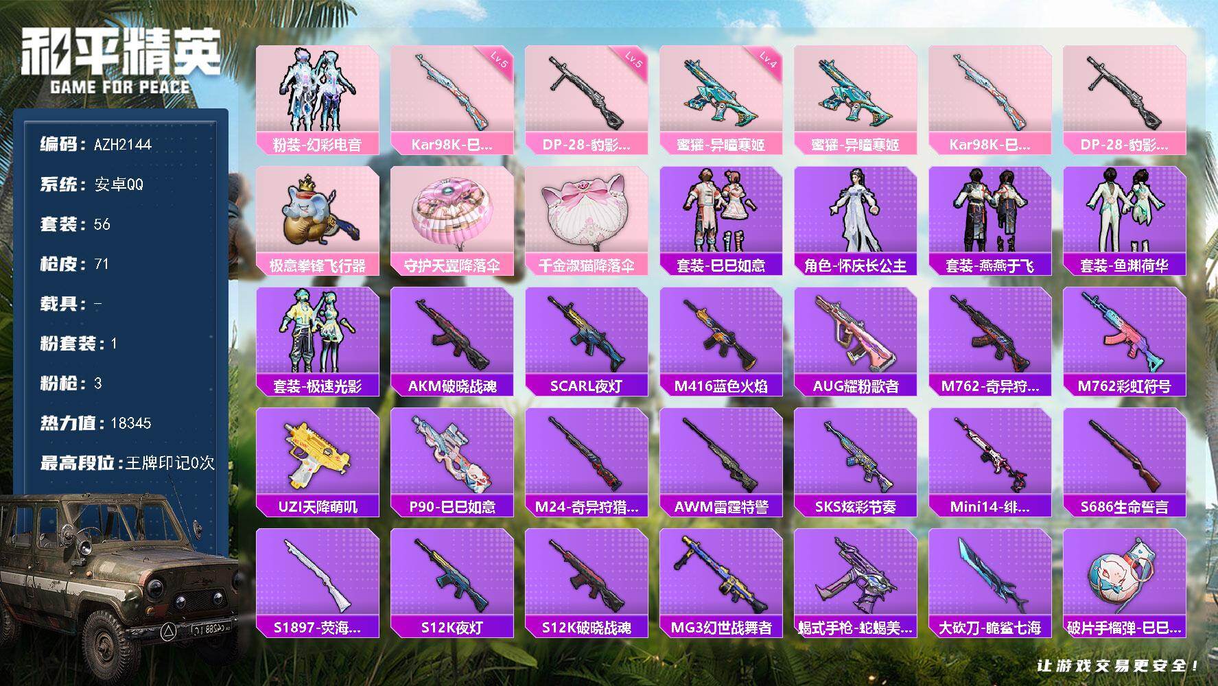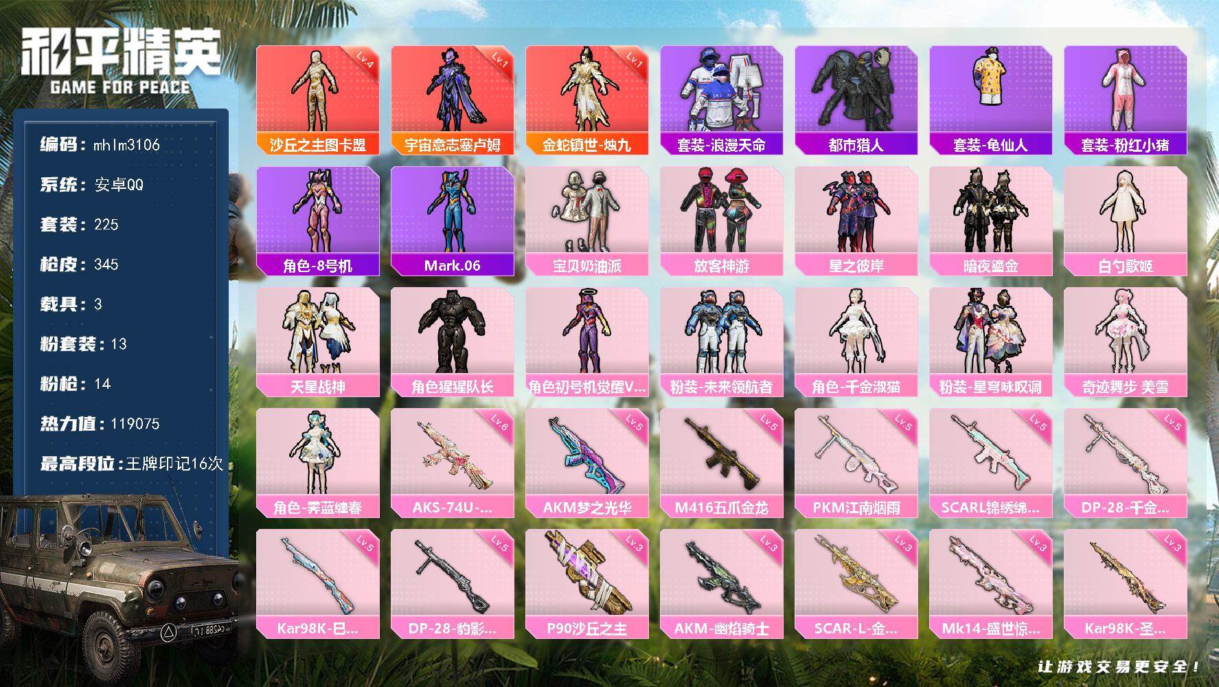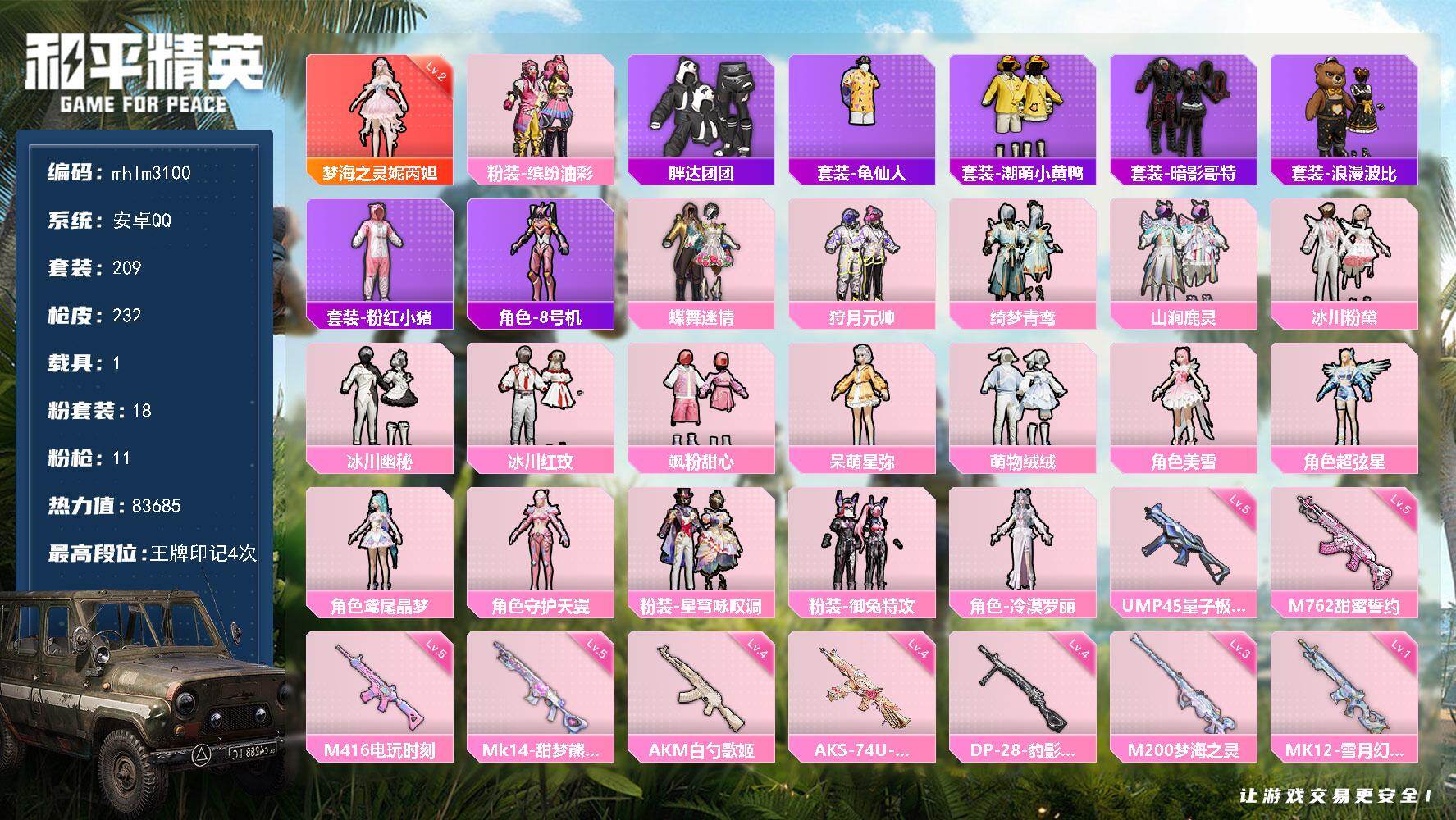 安卓 手Q-6粉装-5特效枪-0载具-4粉色飞行器-47996热力值-2王牌印