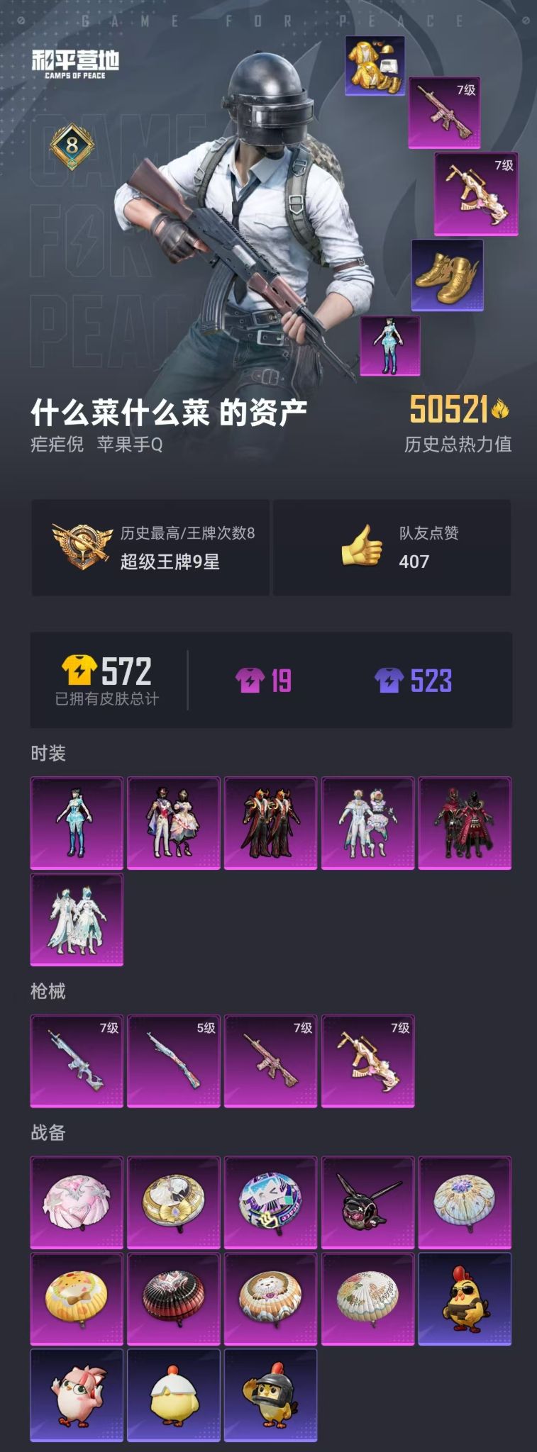 安卓 手Q-4粉装-7特效枪-1载具-3粉色飞行器-48884热力值-8王牌印