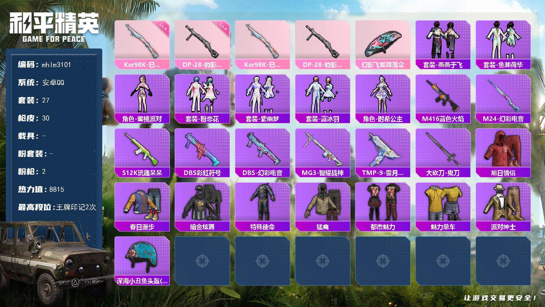 安卓 手Q-4粉装-8特效枪-1载具-2粉色飞行器-48835热力值-4王牌印