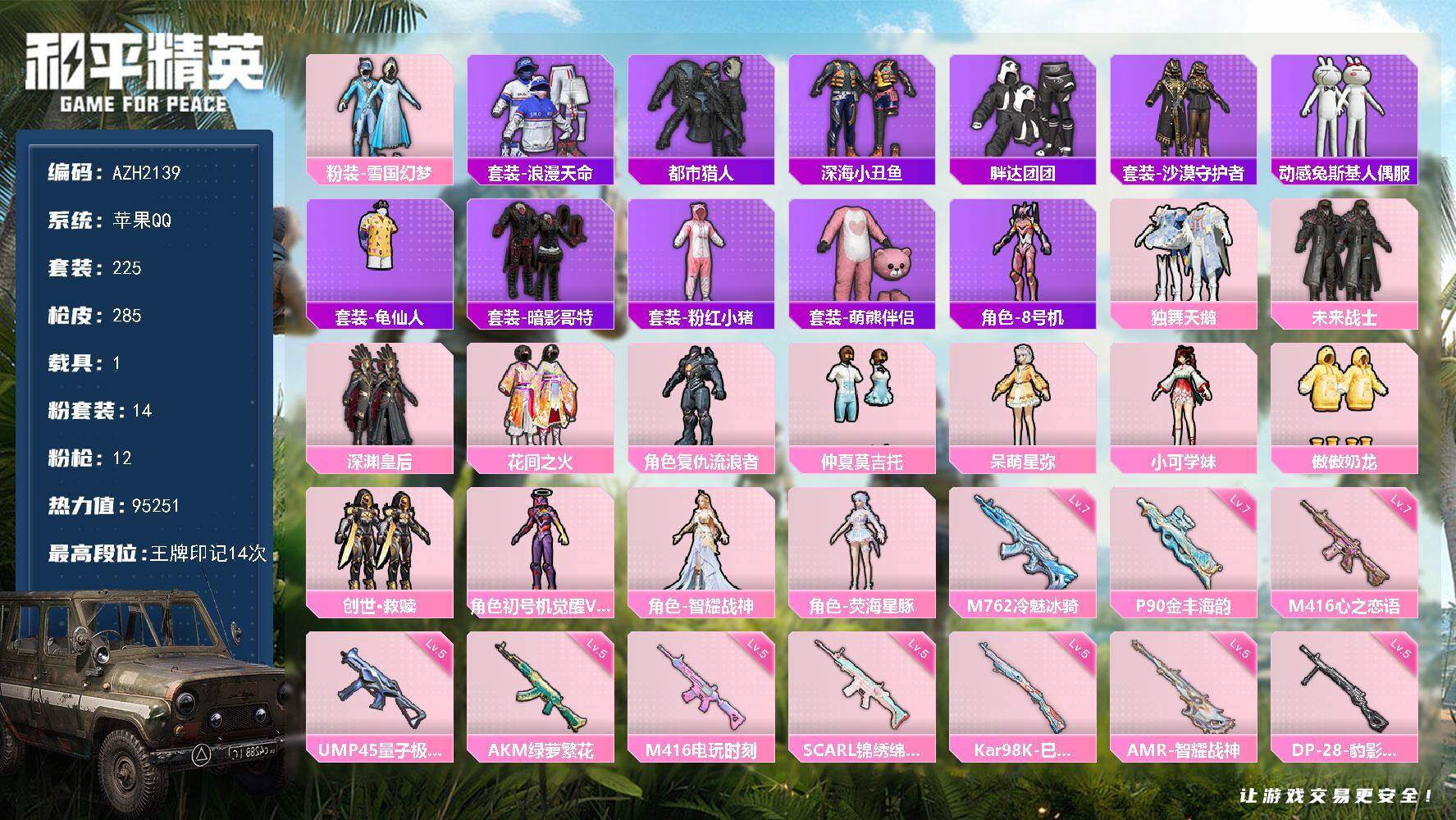 3粉装-7特效枪-1载具-1粉色飞行器-59822热力值-10王牌印记-134套装-172枪皮