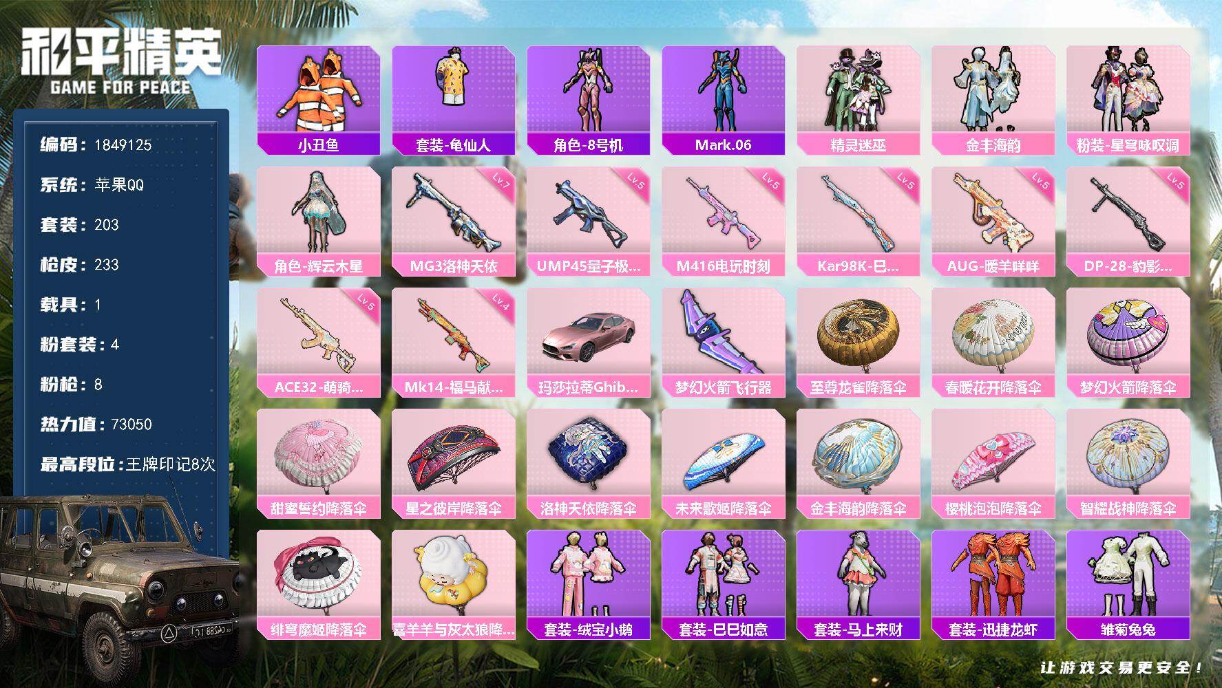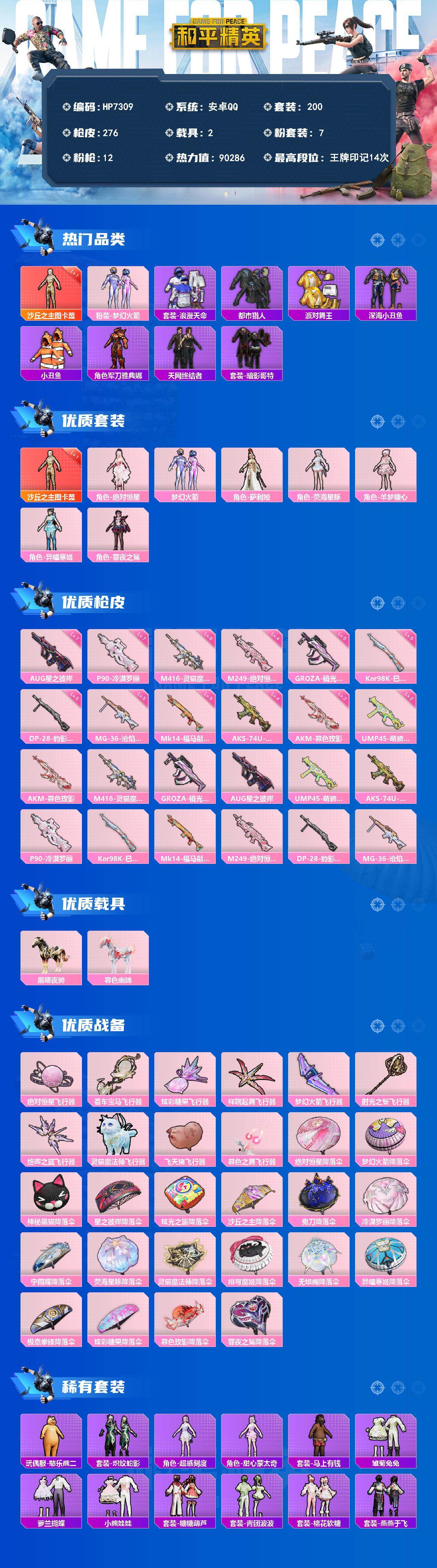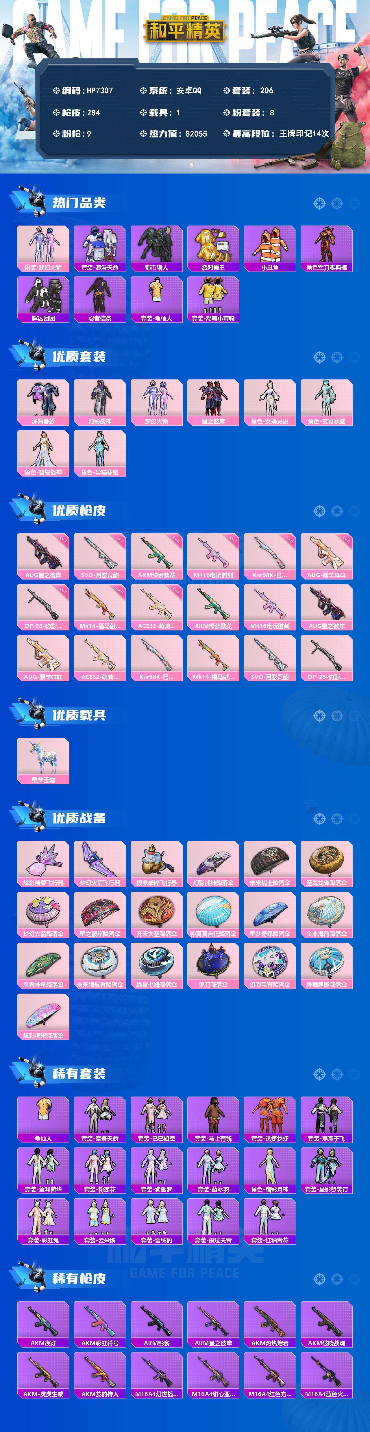 【特价出售/店主推荐】安卓 手Q-1神装-16粉装-7特效枪-0载具-6粉色飞