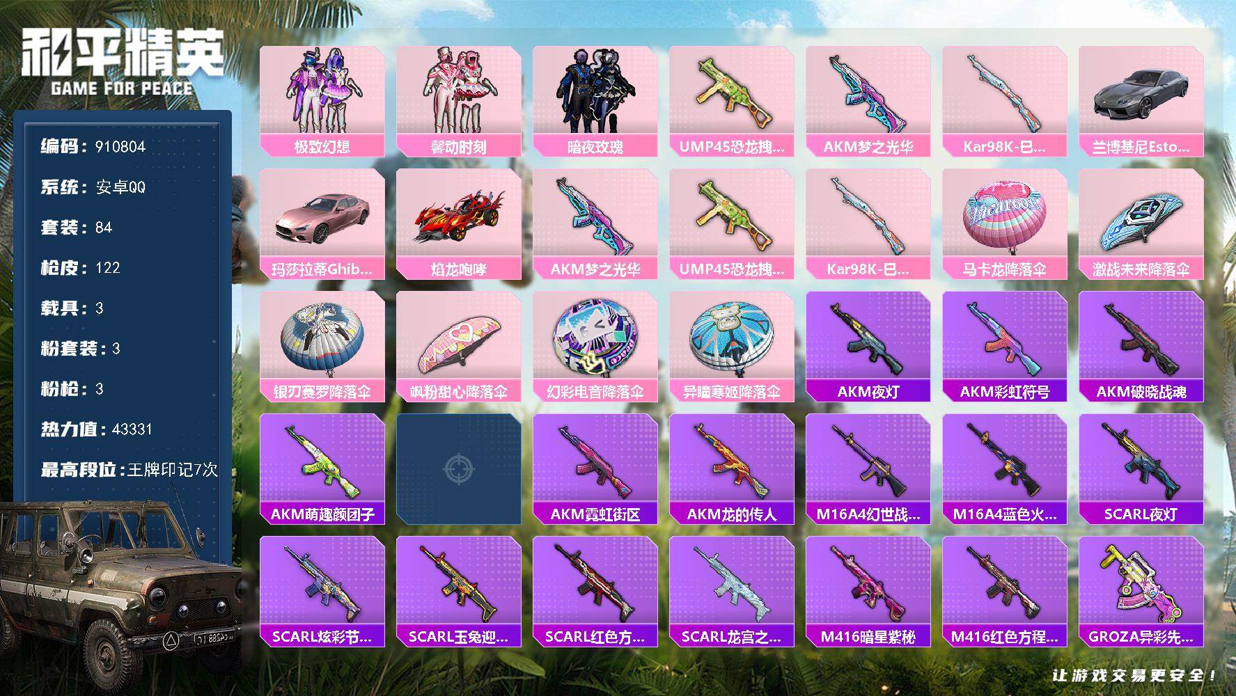 【HP3385】84套装/枪械3/装备129/载具3/战备73/王牌印记7/热力