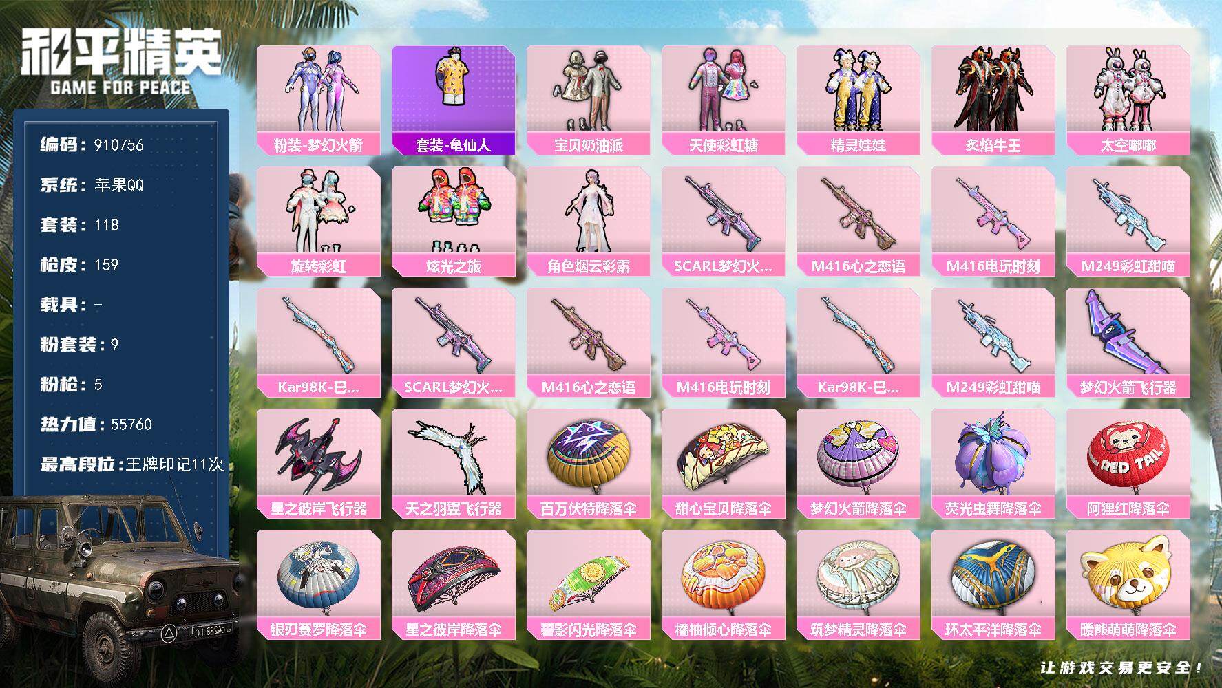 118套装/枪械5/装备200/战备125/王牌印记11/热力值55760/