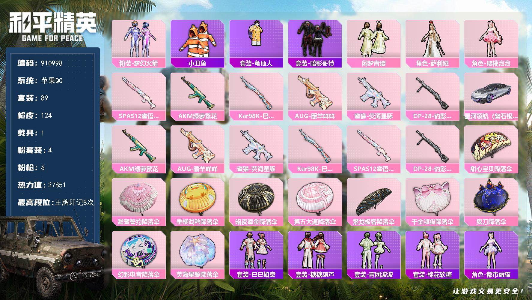 89套装/枪械6/装备142/载具1/战备89/王牌印记8/热力值37851/