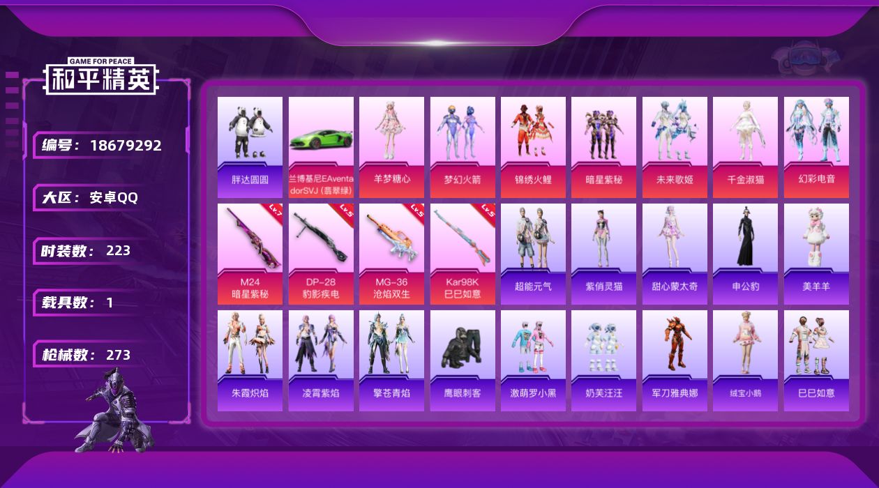 安卓 手Q-7粉装-4特效枪-1载具-5粉色飞行器-91658热力值-11王牌印