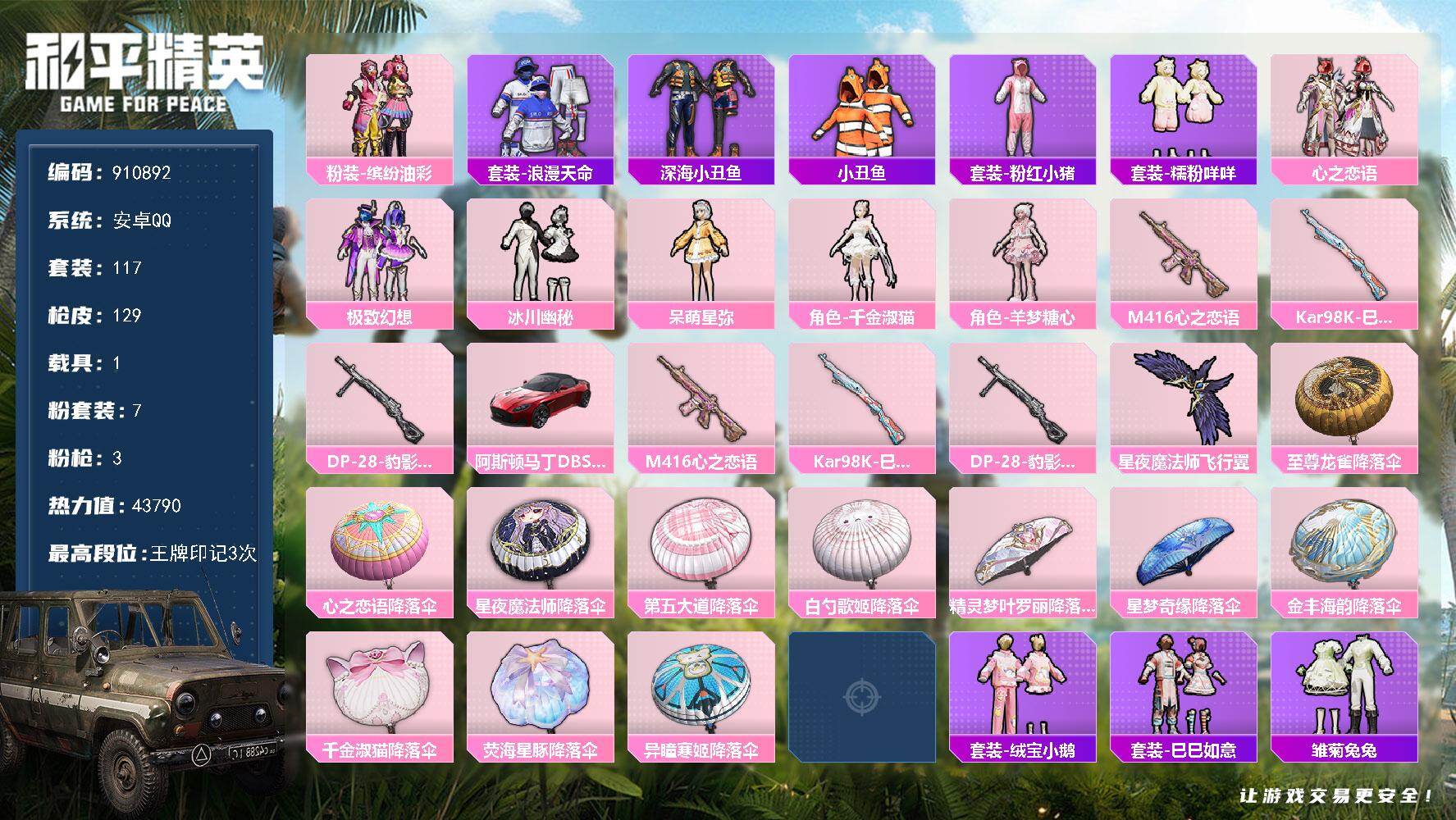123套装/枪械3/装备209/载具2/战备120/王牌印记9/