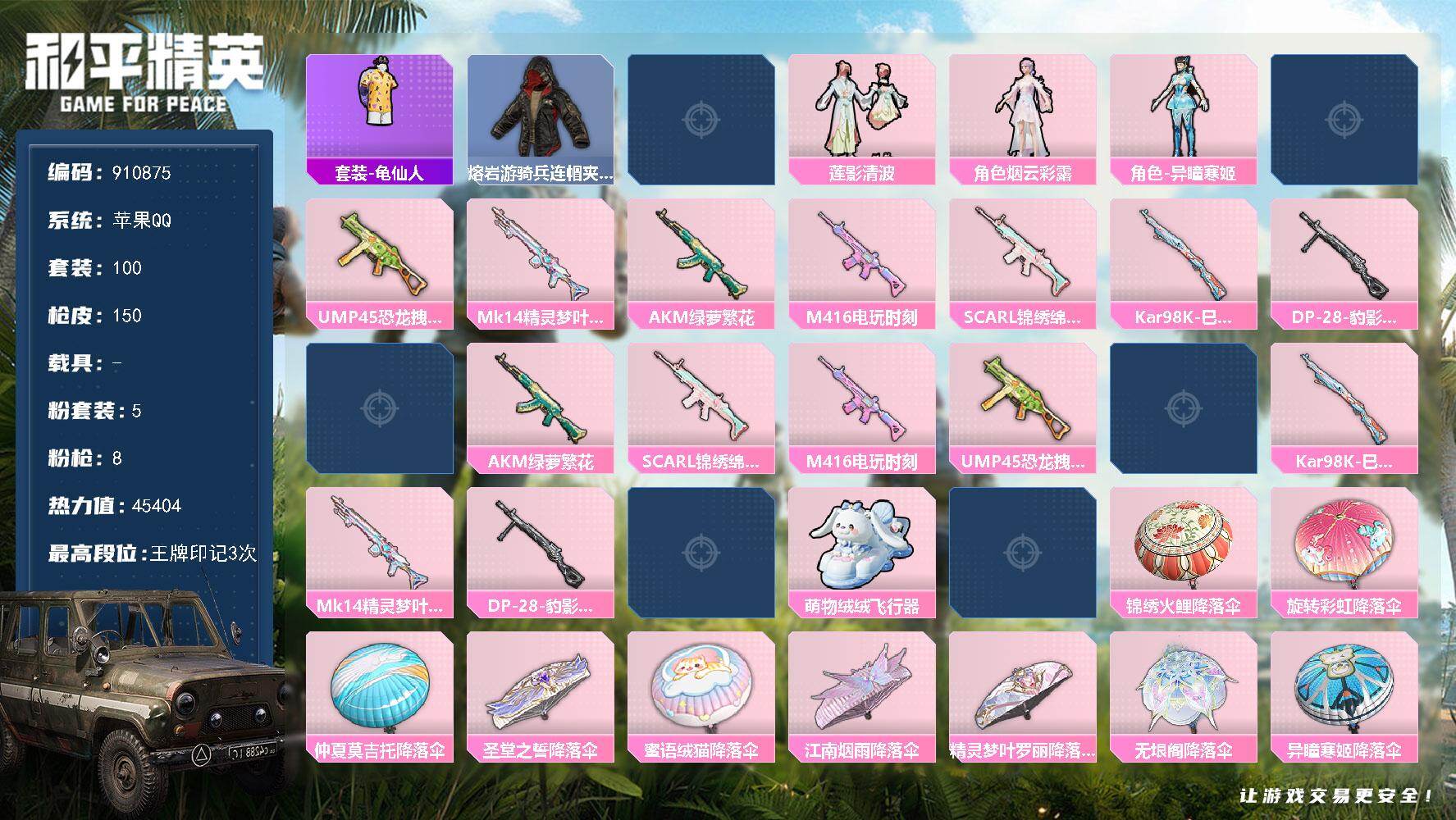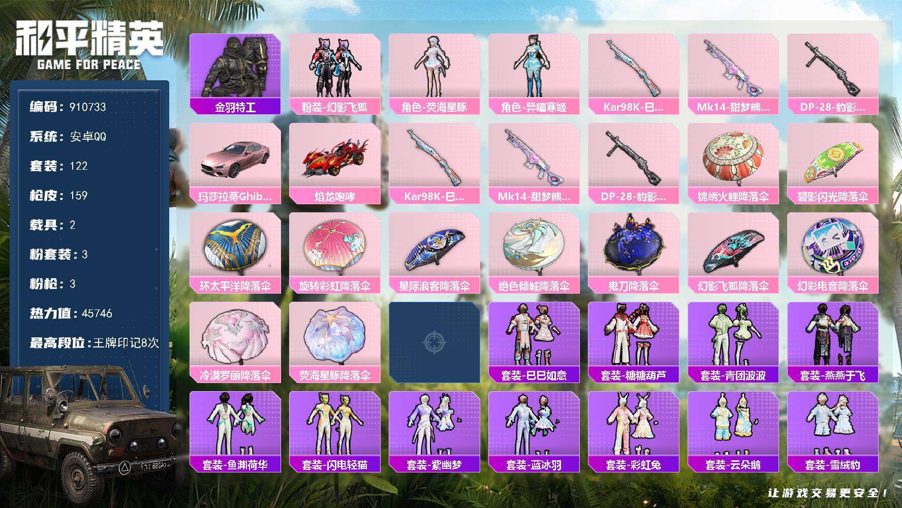 122套装/枪械3/装备171/载具2/战备109/王牌印记8/