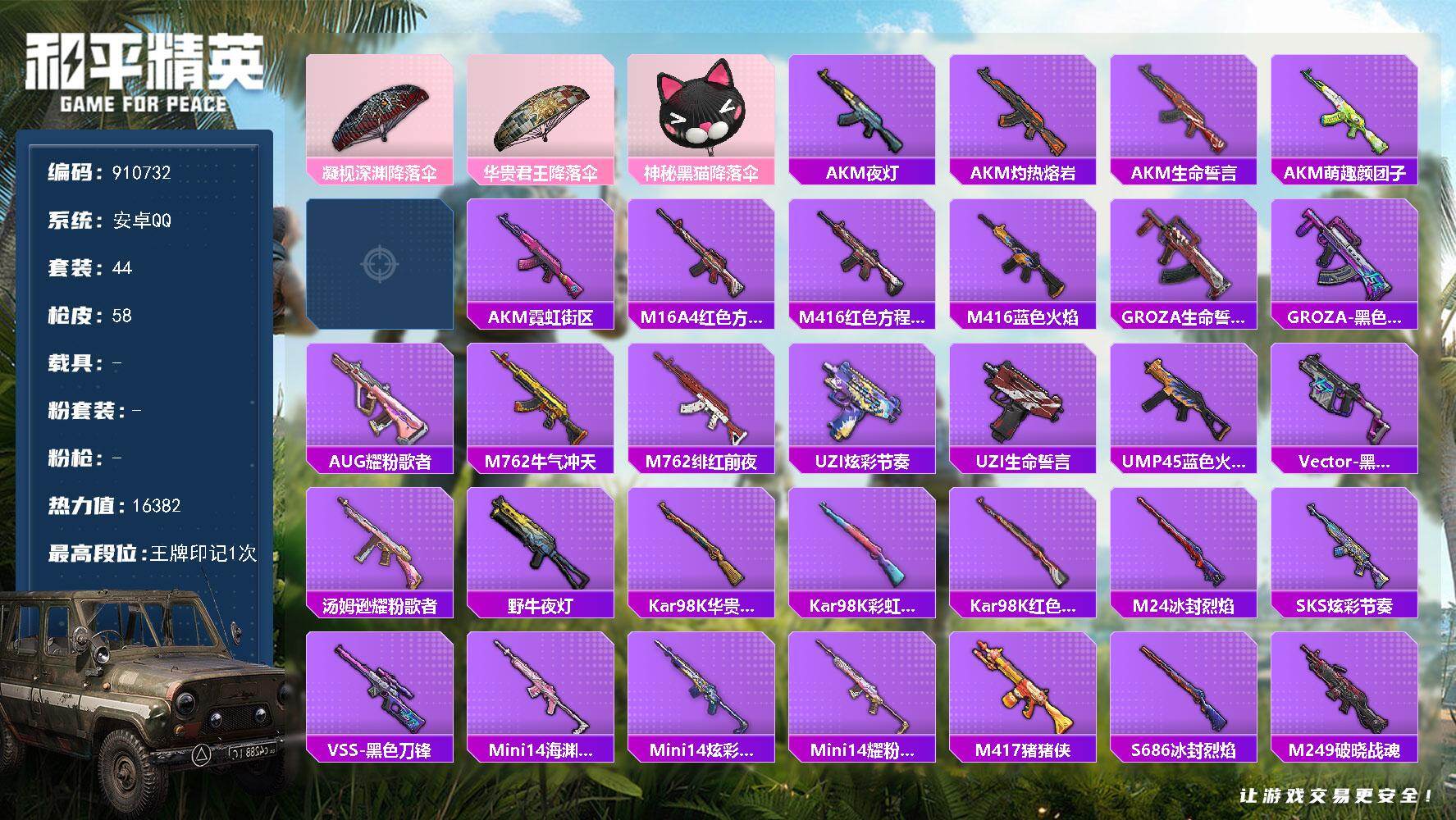 144套装/枪械7/装备304/载具2/战备163/王牌印记17