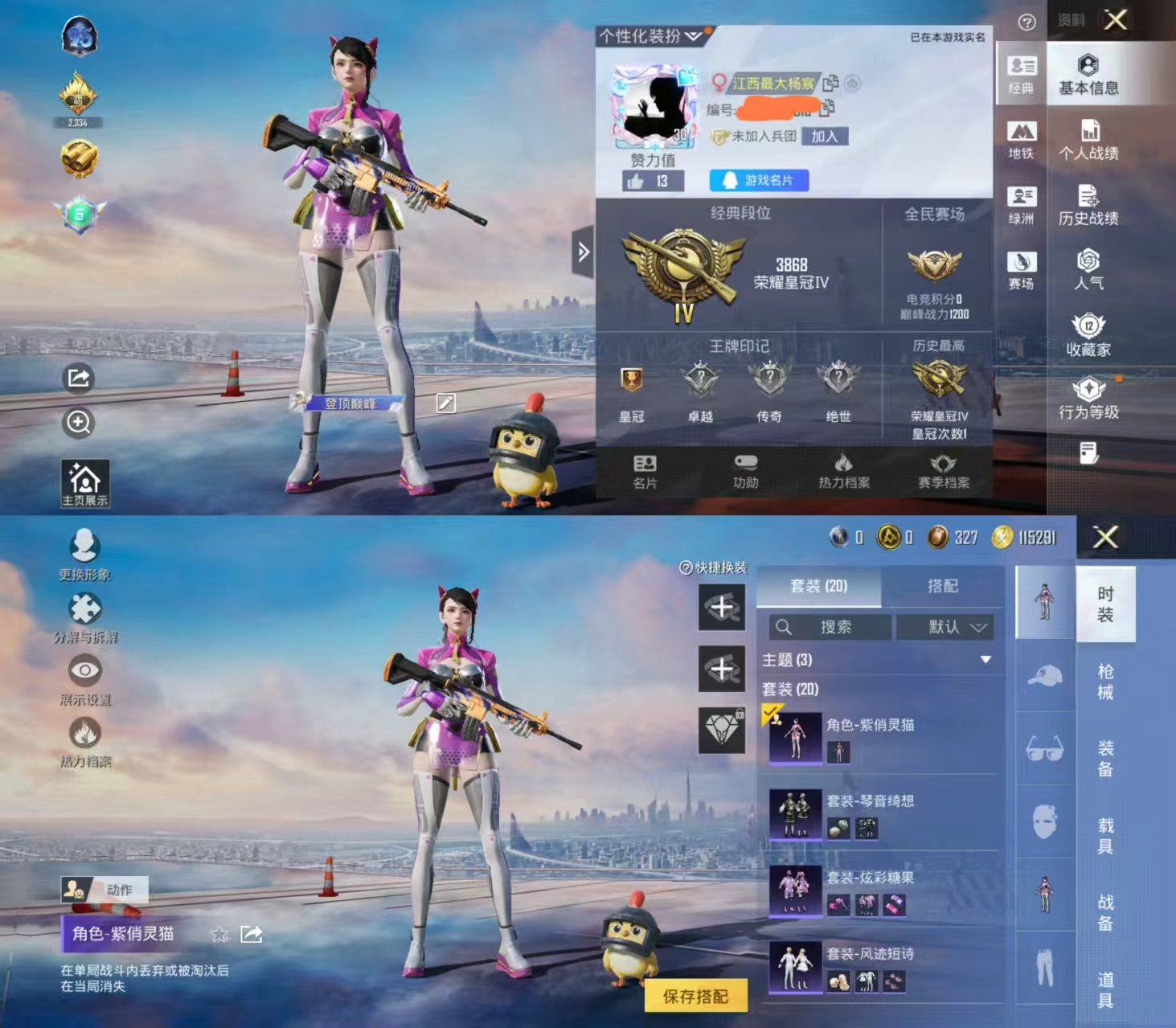H12244【4王牌印记-2特效枪-玩偶服-喜羊羊-送王者33皮肤1传说】Q等级63(3太阳)(吃鸡