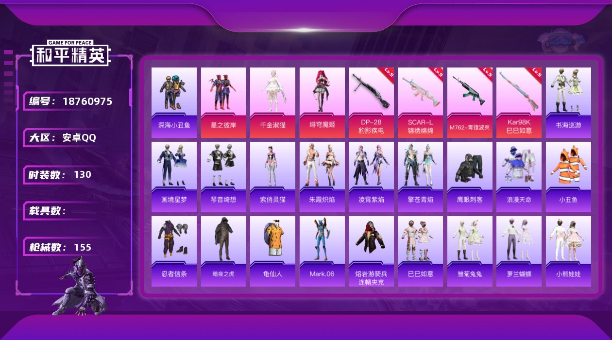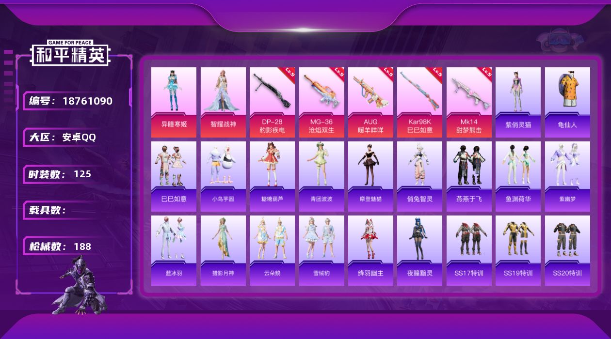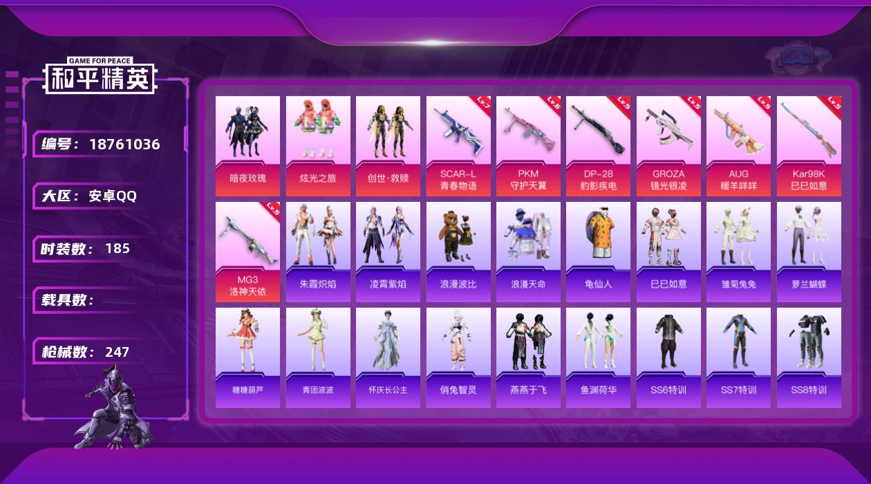 安卓 手Q-3粉装-9特效枪-0载具-2粉色飞行器-75905热力值-7王牌印记