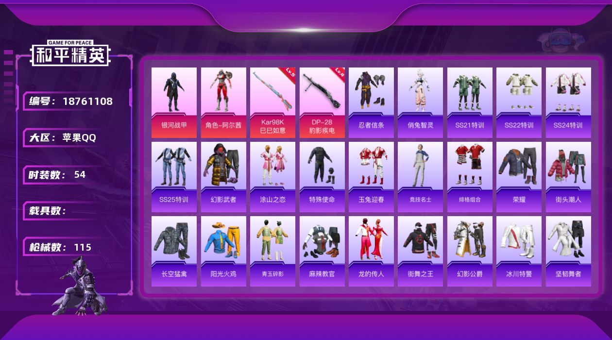 苹果 手Q-2粉装-7特效枪-0载具-1粉色飞行器-70995热力值-14王牌