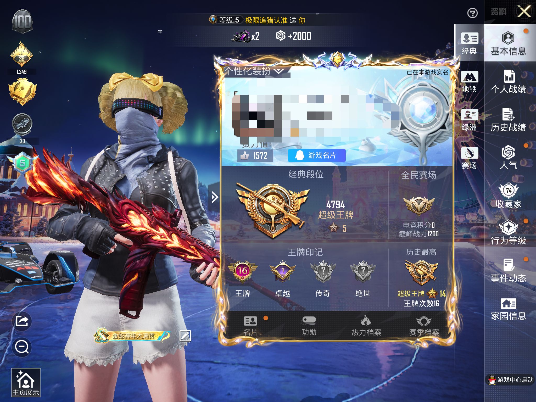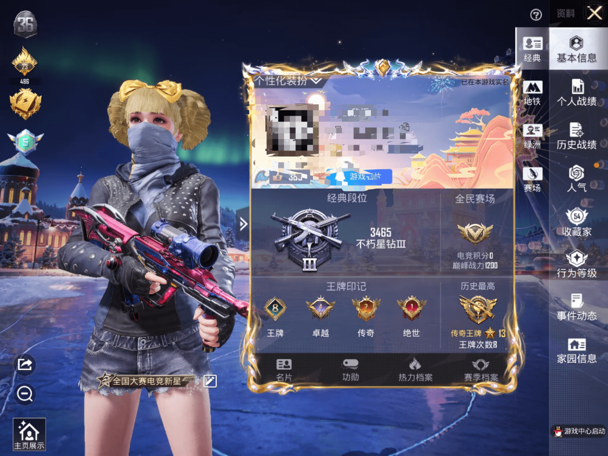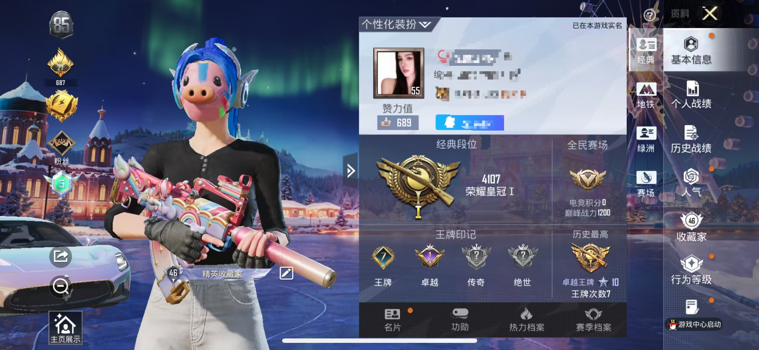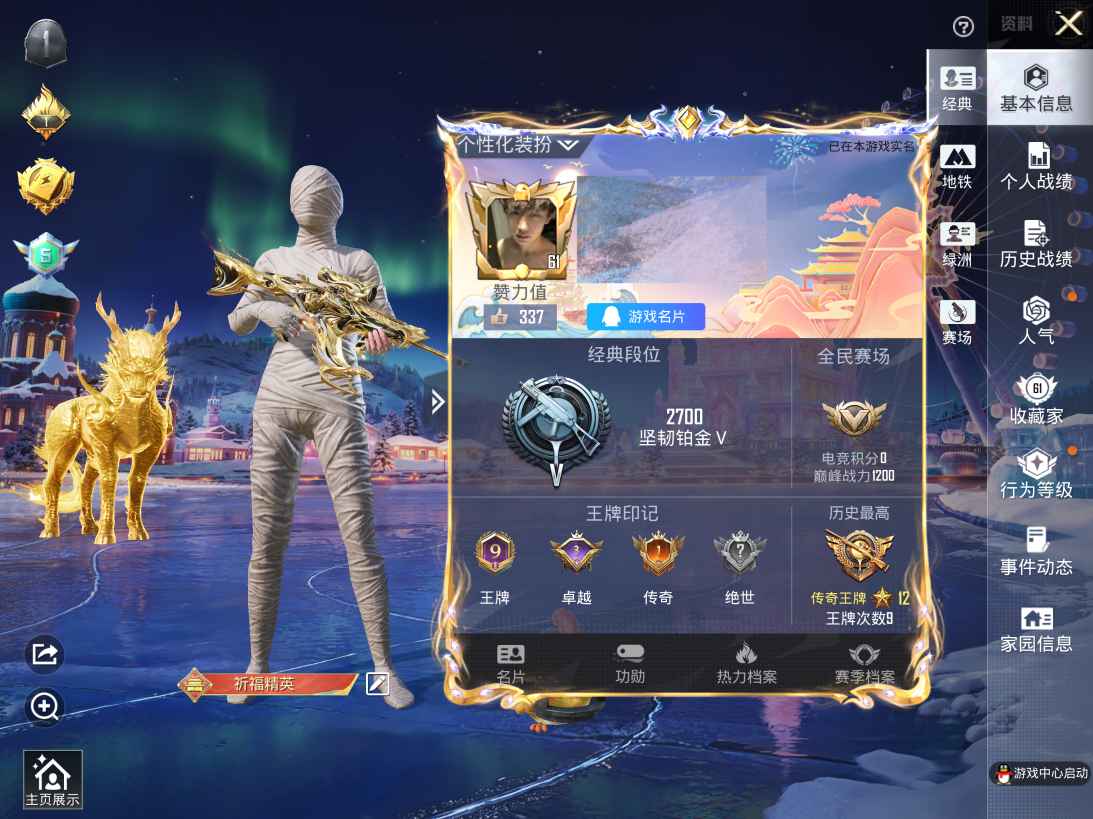 6稀有1载具19粉装15特效枪19热门184套装240枪皮 86785热力值 16印记 历史超级王牌14星