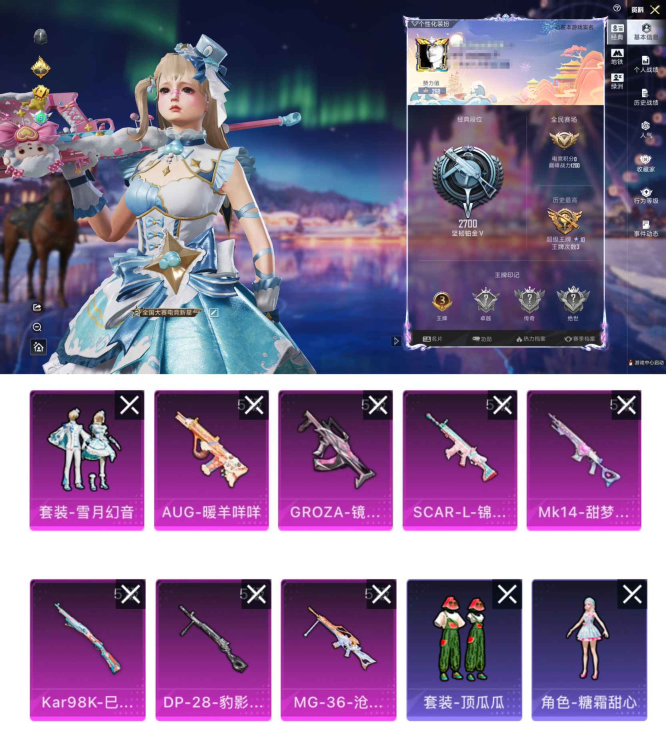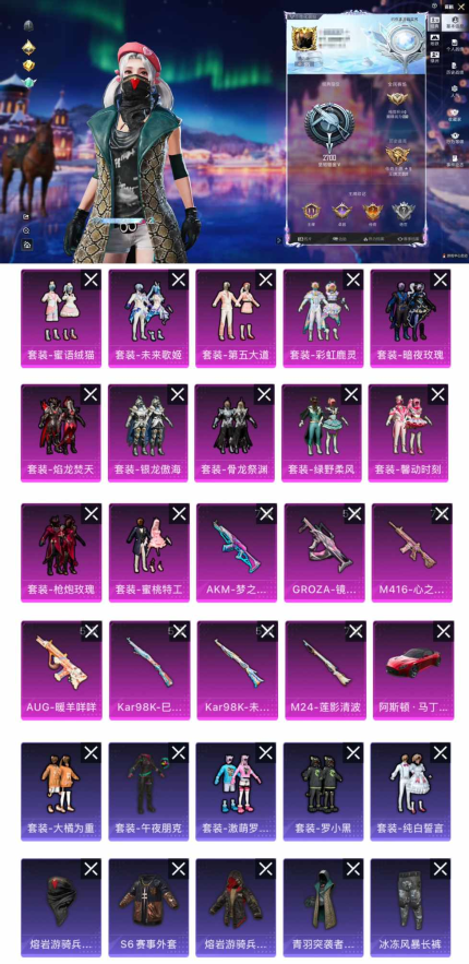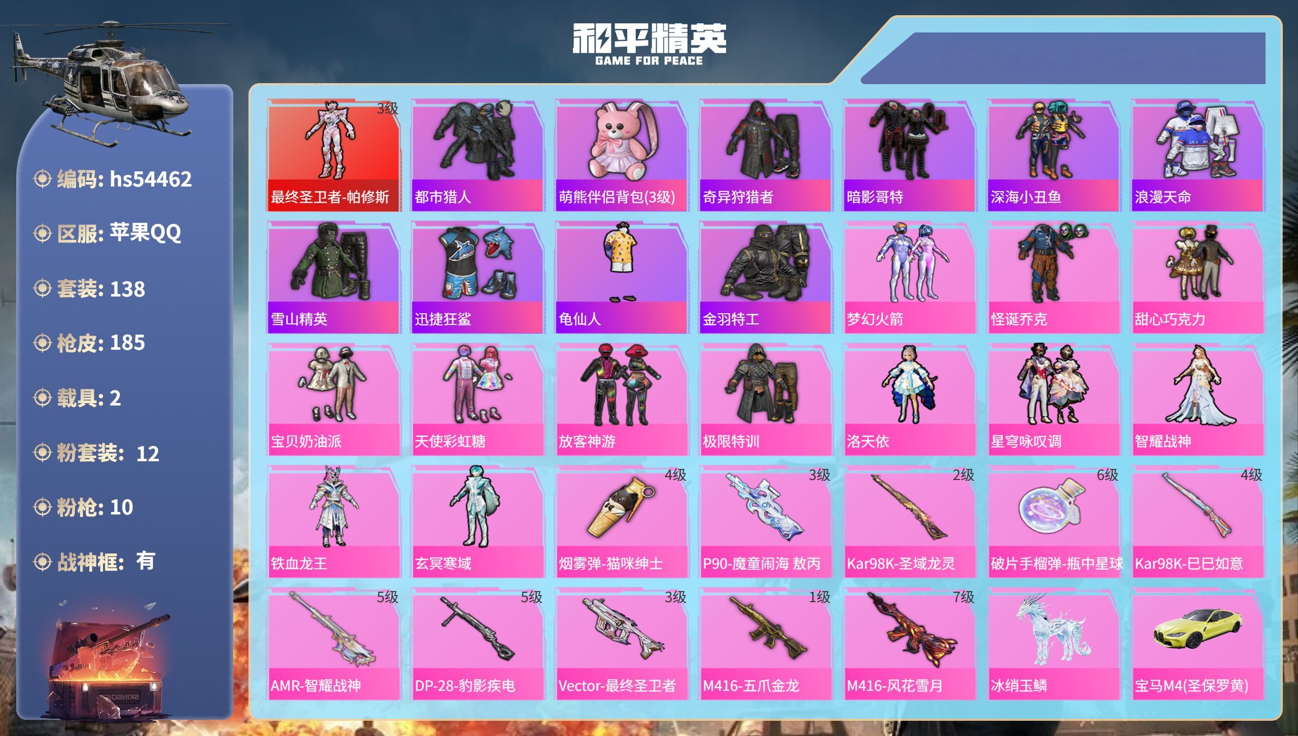 5粉装-2特效枪-3载具-2粉色飞行器-49854热力值-9王牌印记-126套