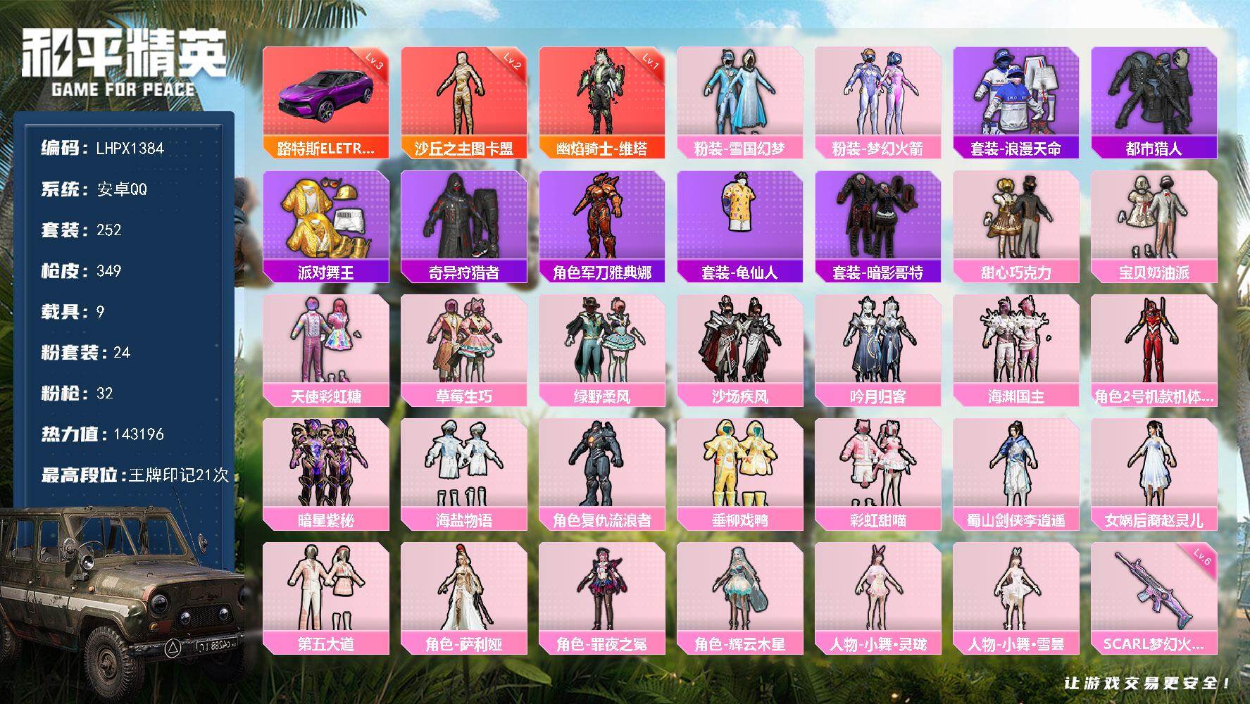 安卓 手Q-2神装-24粉装-32特效枪-9载具-10粉色飞行器-143196热