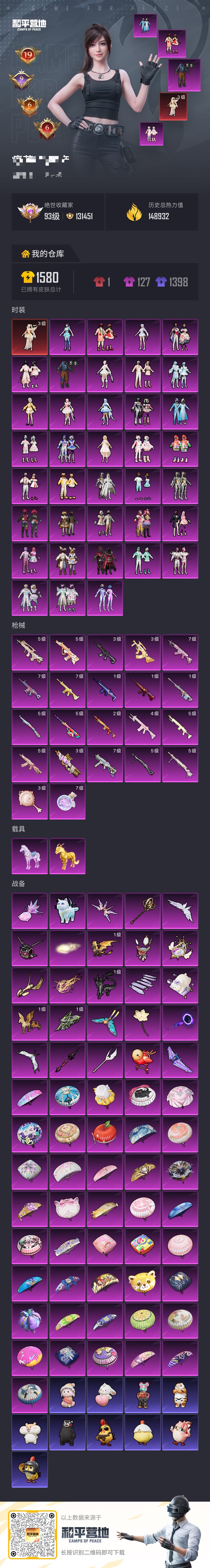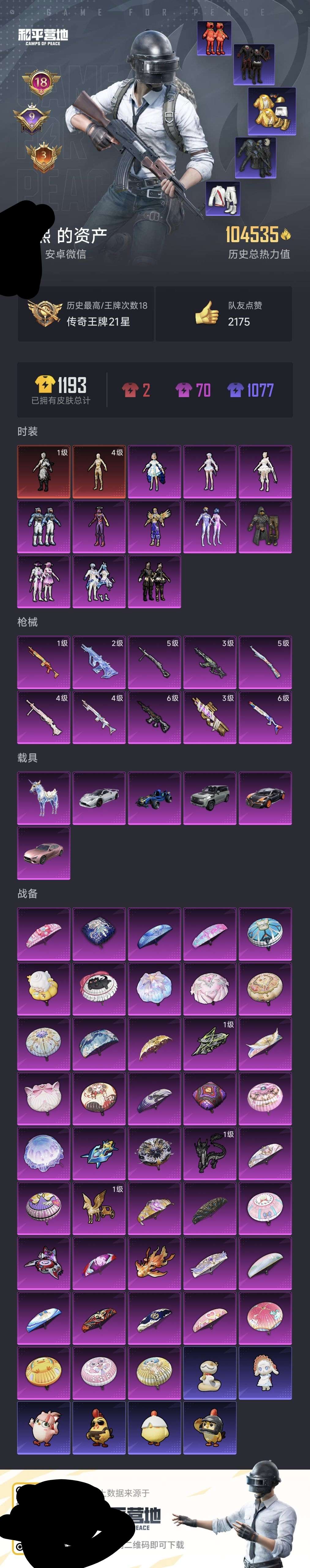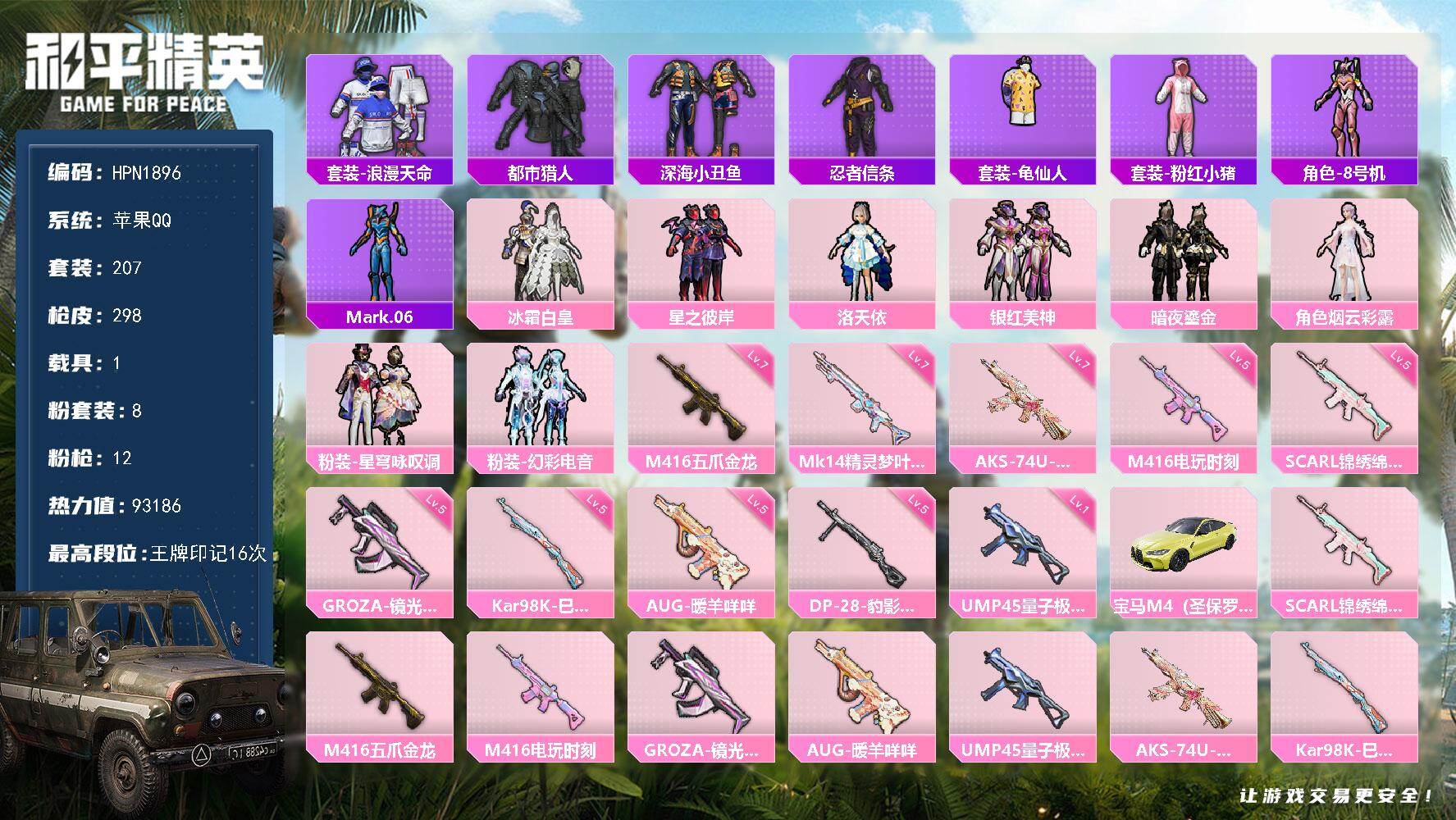 207套装/枪械12/装备425/载具1/战备189/王牌印记16/热力值93186/