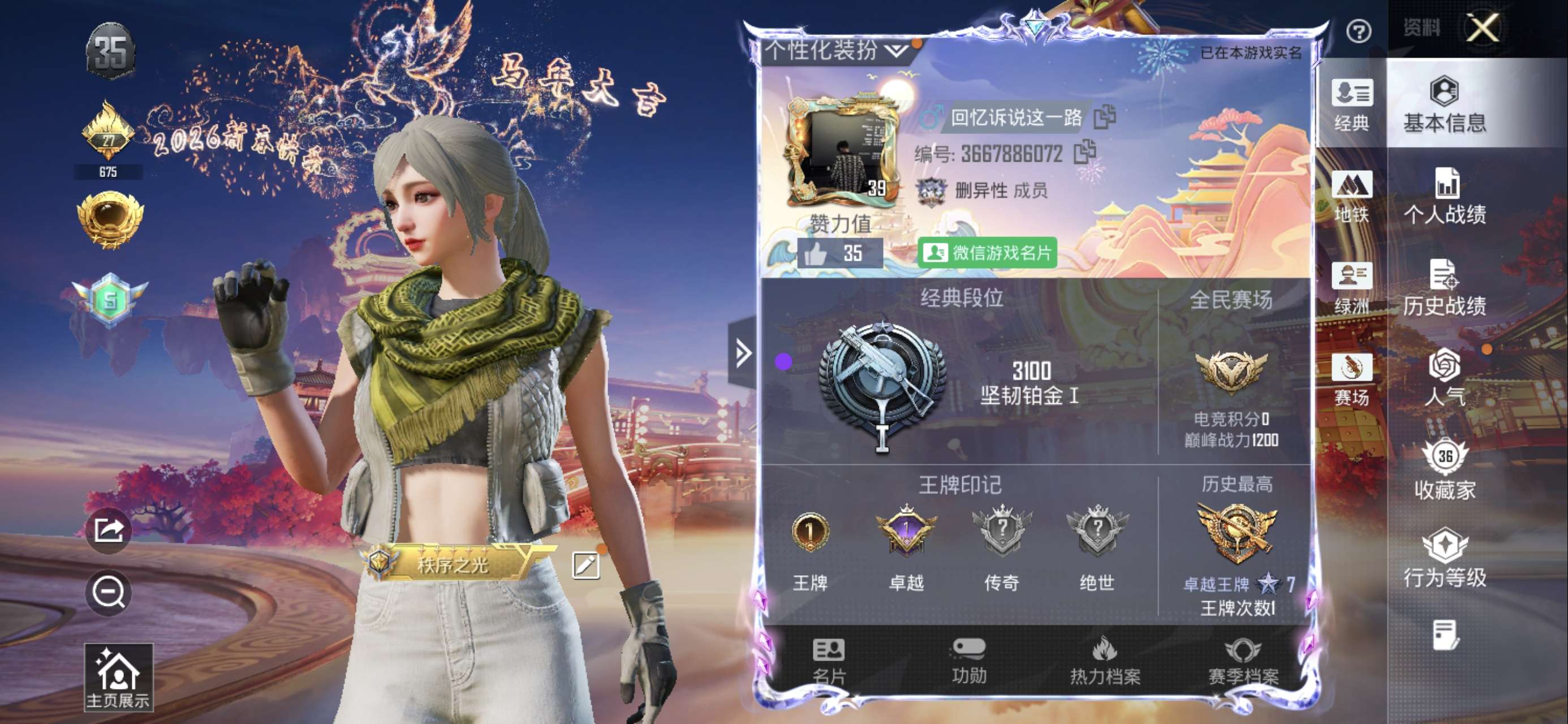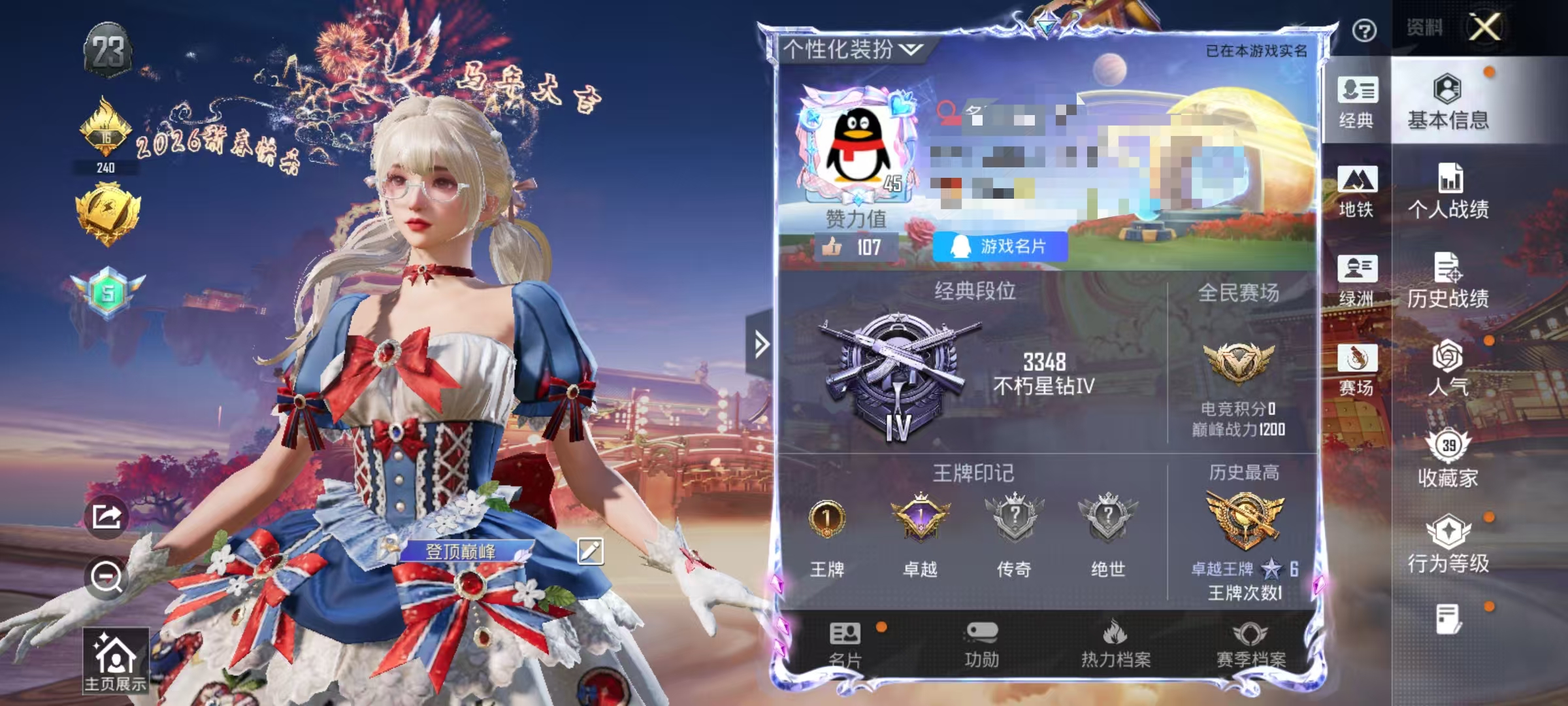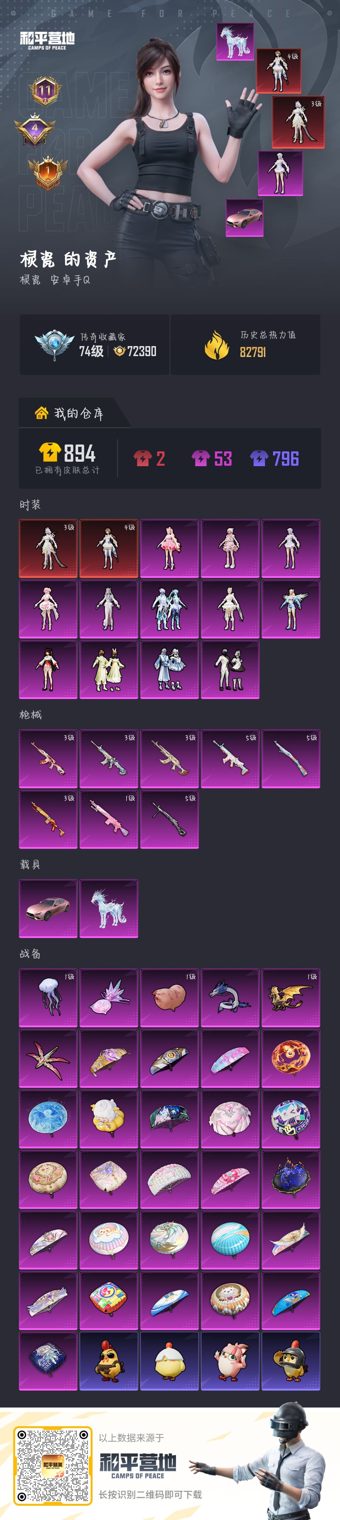 207套装/枪械12/装备425/载具1/战备189/王牌印记16/热力值93186/