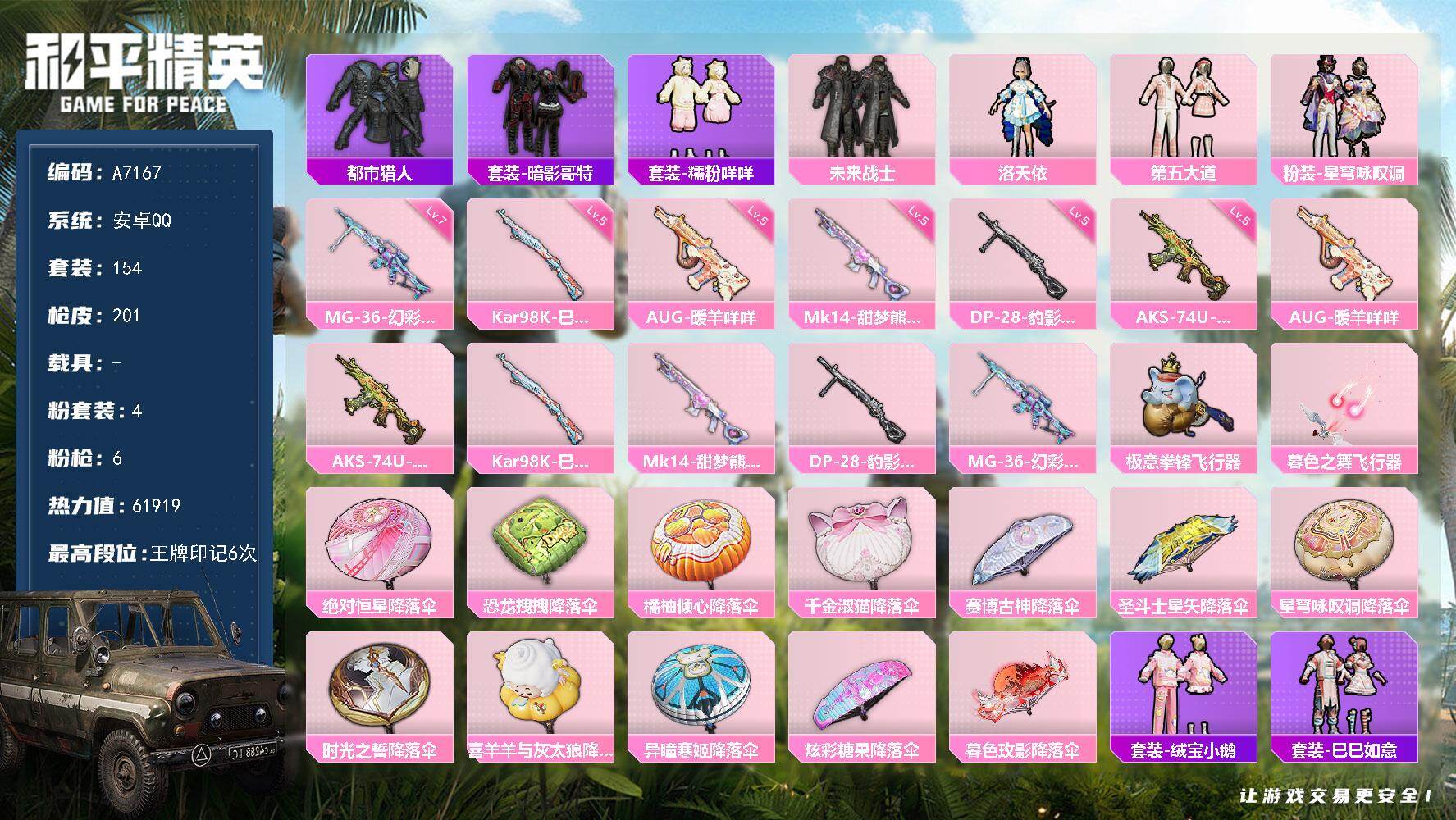 4粉装-6特效枪-0载具-3粉色飞行器-61919热力值-6王牌印记-154套装-201枪皮