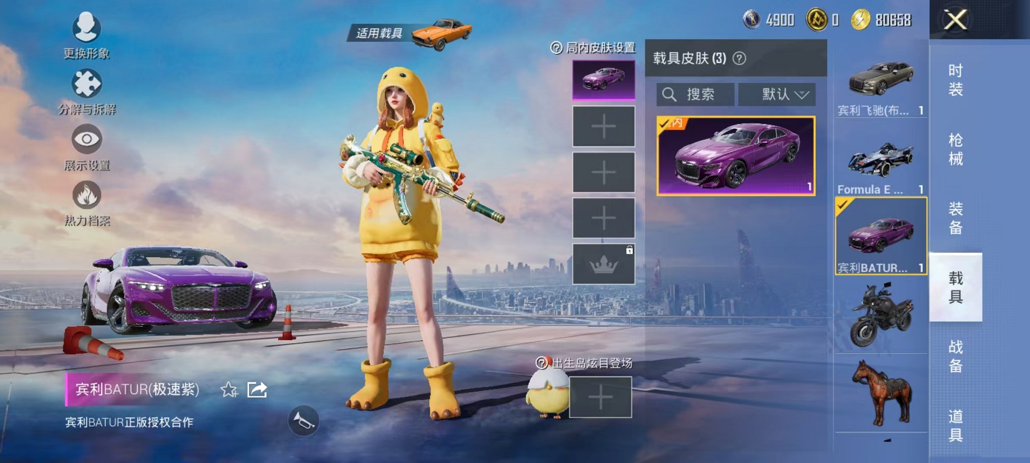 1神装-烛九宝马2粉装2特效枪1载具可秒换绑