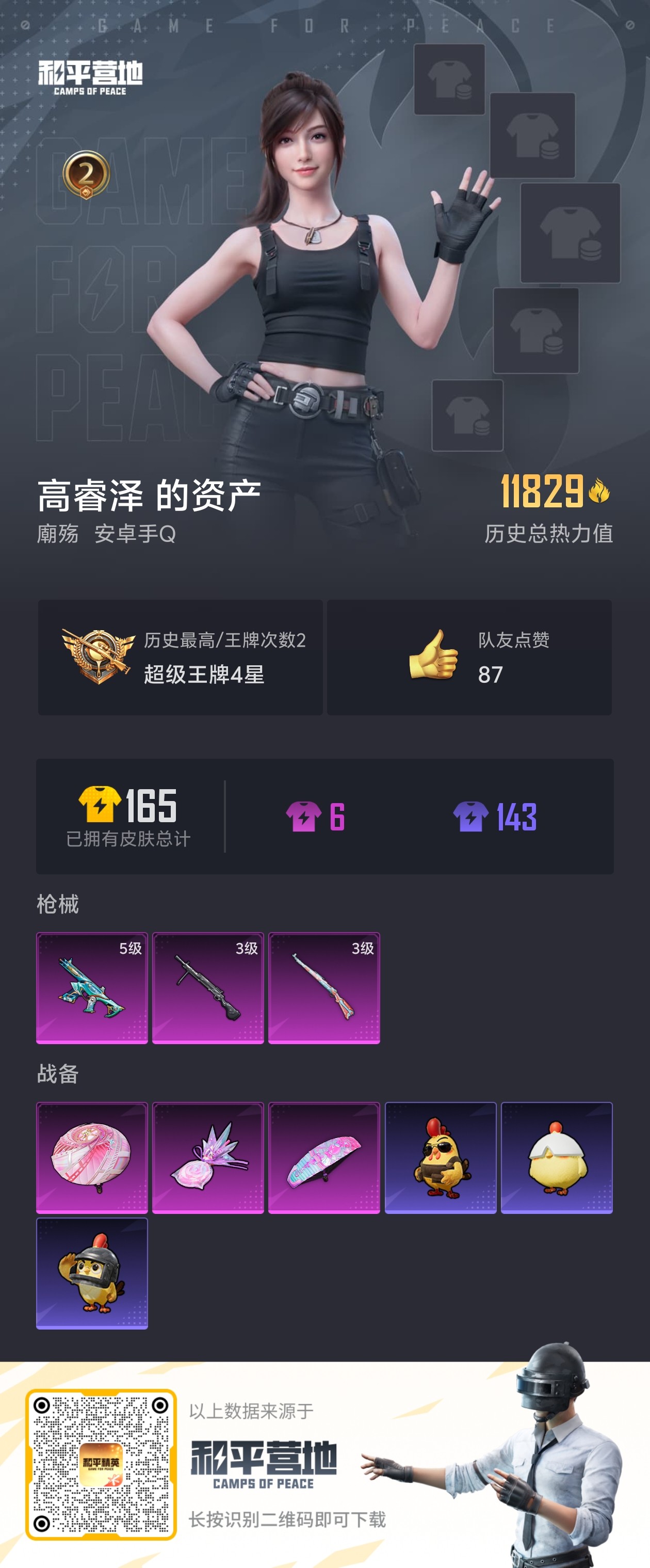 hs55501 安卓手Q-11王牌印记-1红装-10粉装-7特效枪-5载具-57279热力值-111