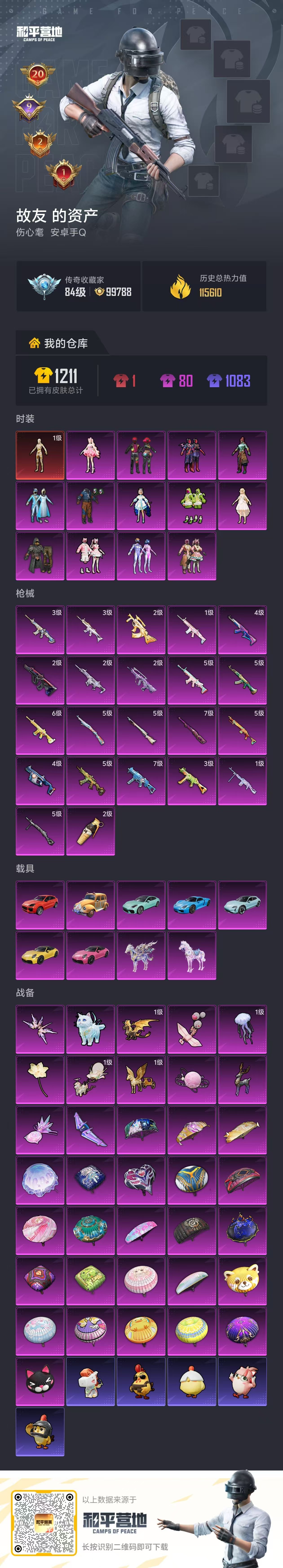 安卓QQ/5王牌印记-6红装-12粉装-18特效枪-6载具-86764热力值-103套装-189枪皮