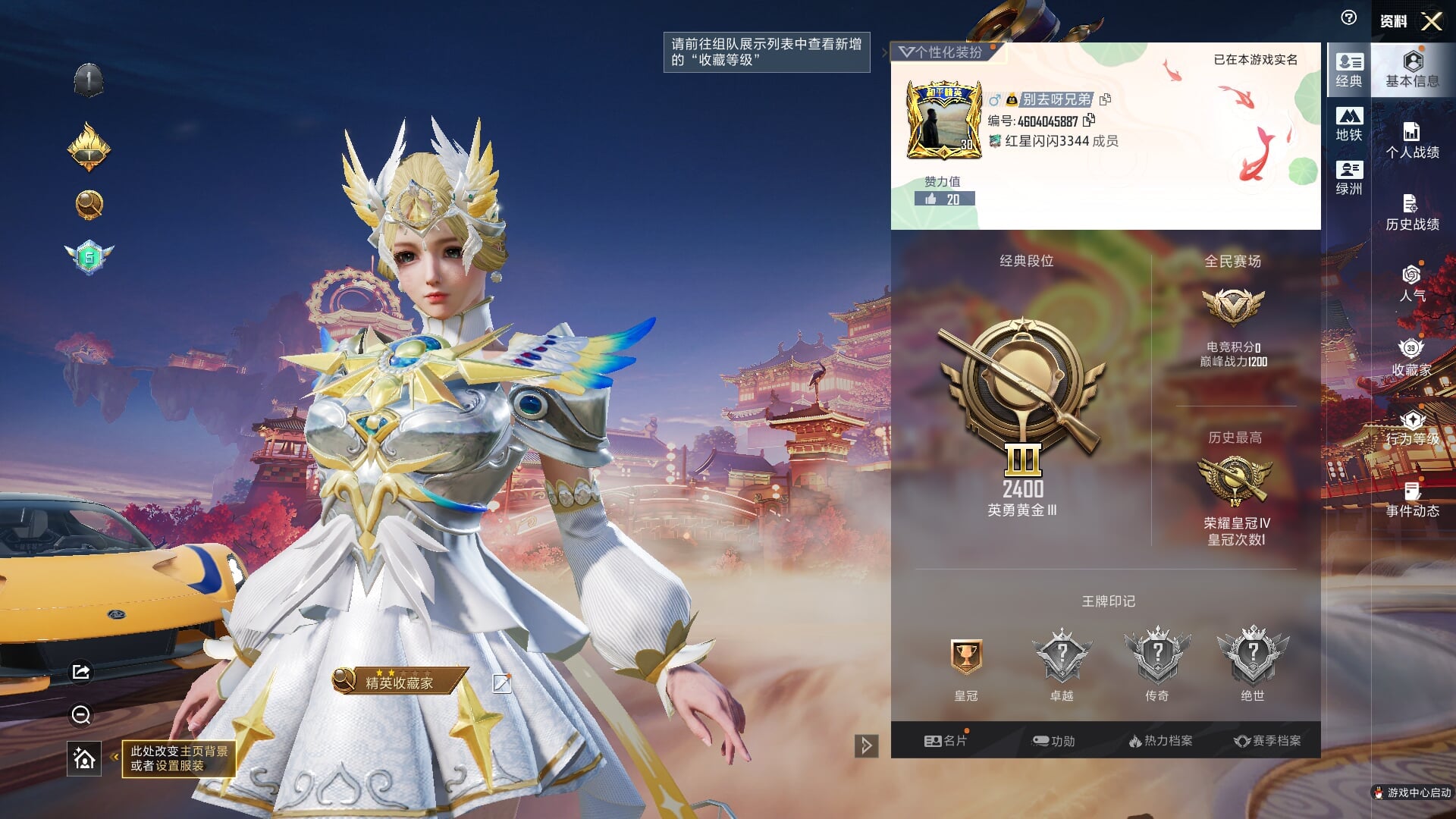 1神装-0粉装-2特效枪-1载具-1粉色飞行器-20283热力值-4王牌印记-59套装-60枪皮