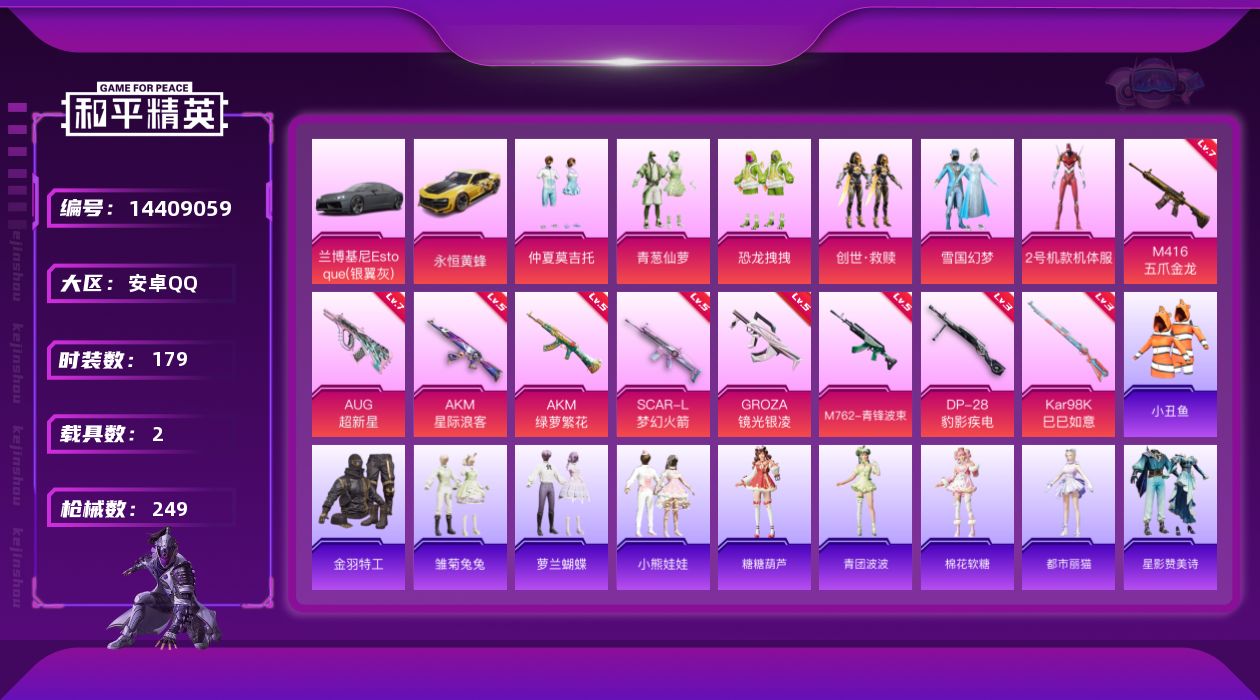 179套装/枪械9/装备311/载具2/战备194/王牌印记25/热力值83606/五级AKM-星际
