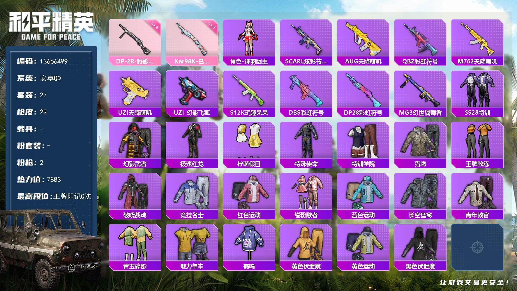 安卓 手Q【幻彩电音 满级甜心宝贝AKM】2粉装-5特效枪-0载具-1粉色飞行器