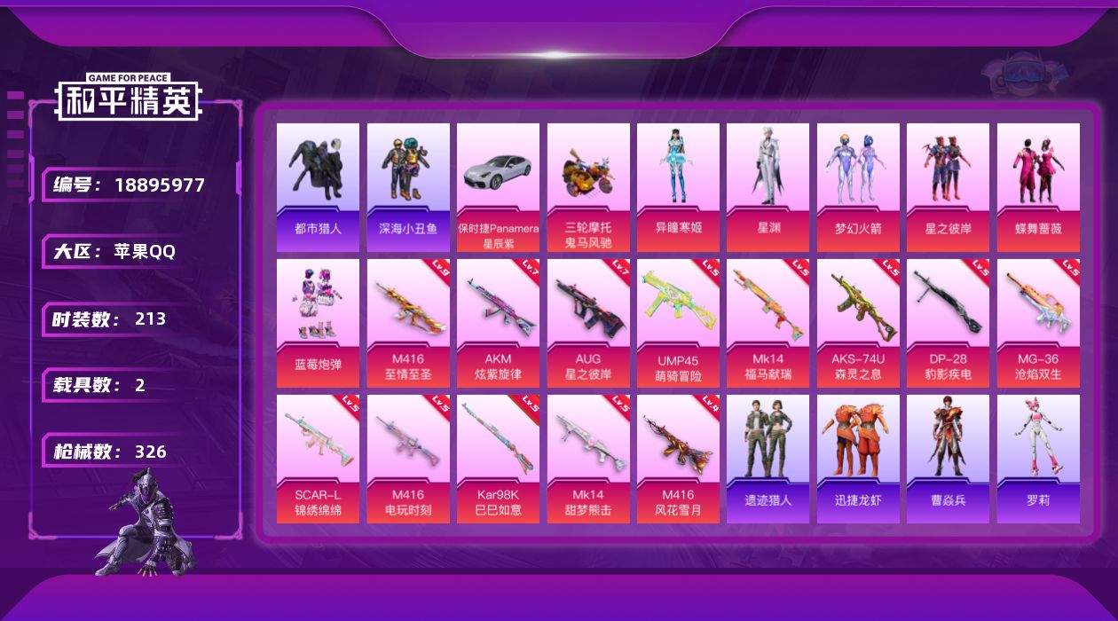 苹果手Q-33王牌印记-有战神框-3红装-16粉装-12特效枪-